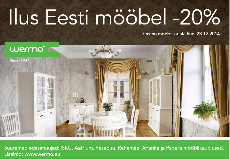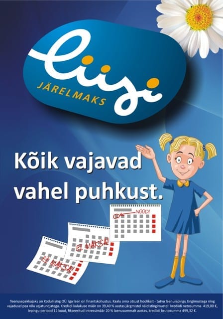 Soodusaeg: 01.04-31.05.2014 Koht: Haapsalu, Paide, Pärnu ja Tallinna Ananke kauplused ning e-pood Toode: Liisi järelmaksu intress 0% (lepingu pikkus 12 kuud)