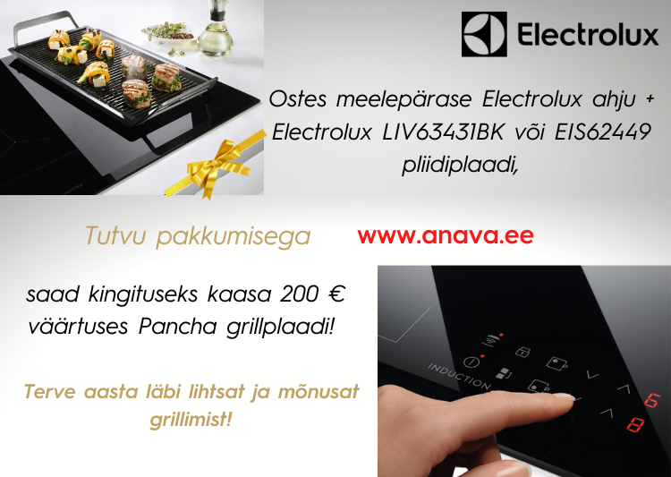 Valides oma kööki Electroluxi ahju + pliidiplaadi Electrlux LIV63431BK või EIS62449 tuleb teile kaasa tasuta Pancha grillplaat!