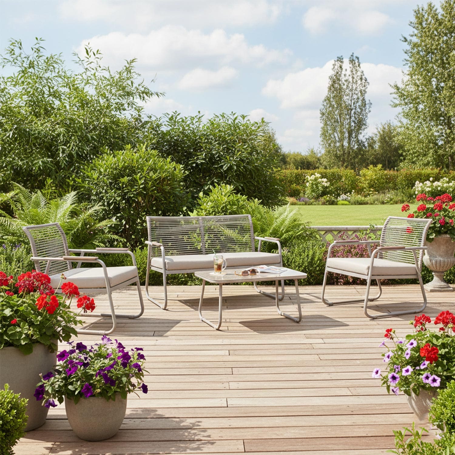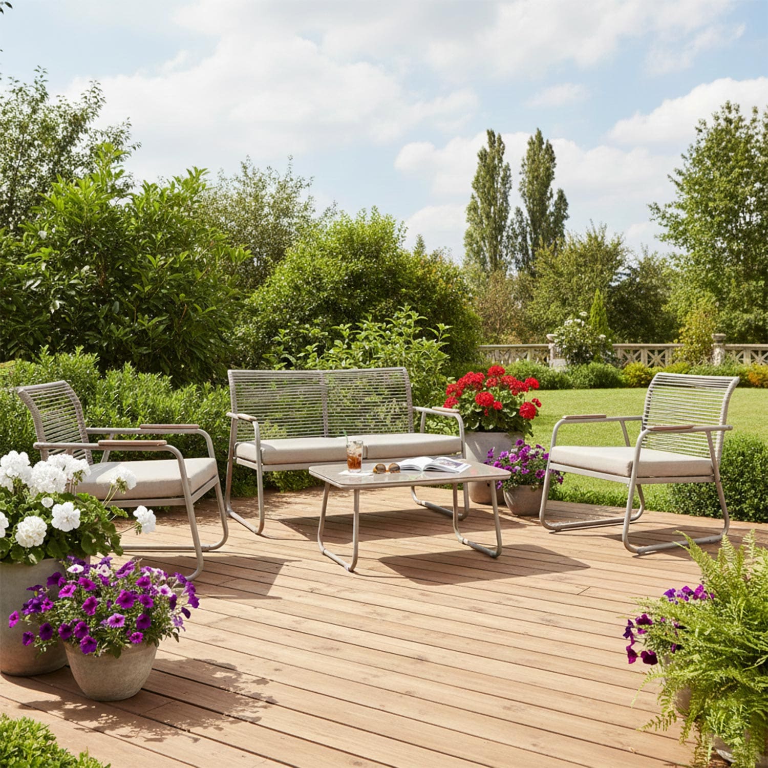 Aiamööblikomplekt MACOS laud, diivan ja 2 tooli, beež.