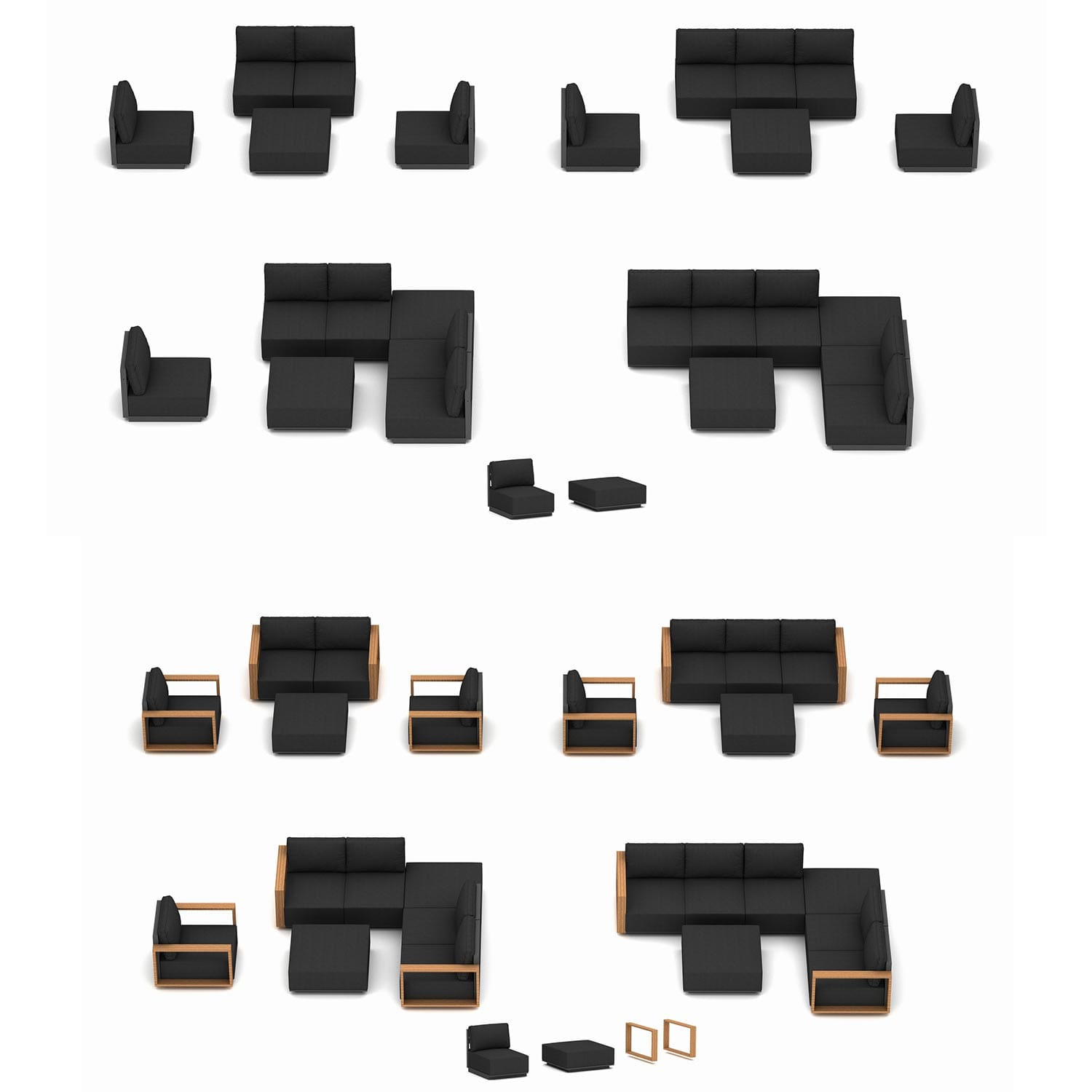Sarja kuulub 1-kohaline ilma käetugedeta moodul, tumba, käetoed ja diivanilaud. Kõik osad on saadaval eraldiseivate toodetena.