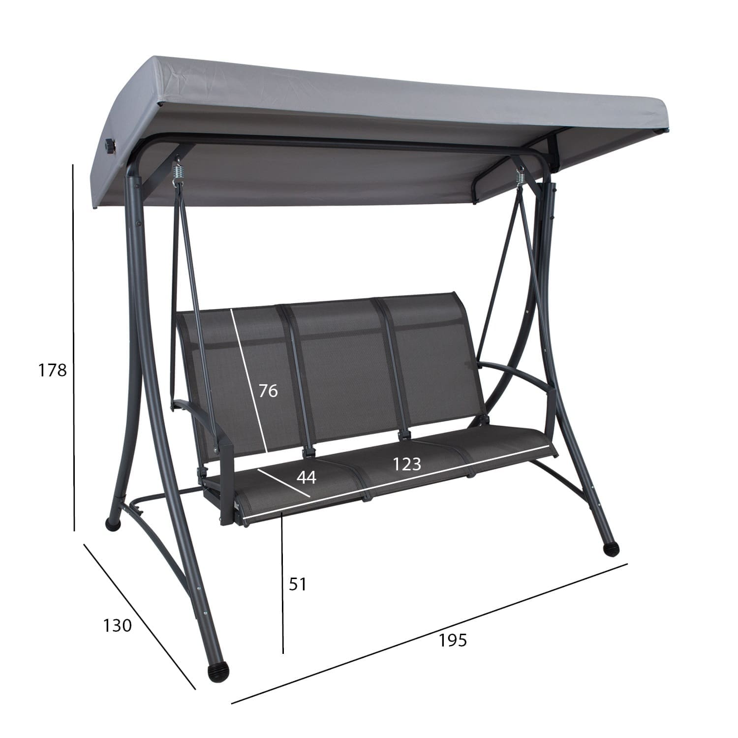 Kiige katuseraam on kaetud halli polüesterkangaga (180g/m²). Katuse kaldenurk on reguleeritav.