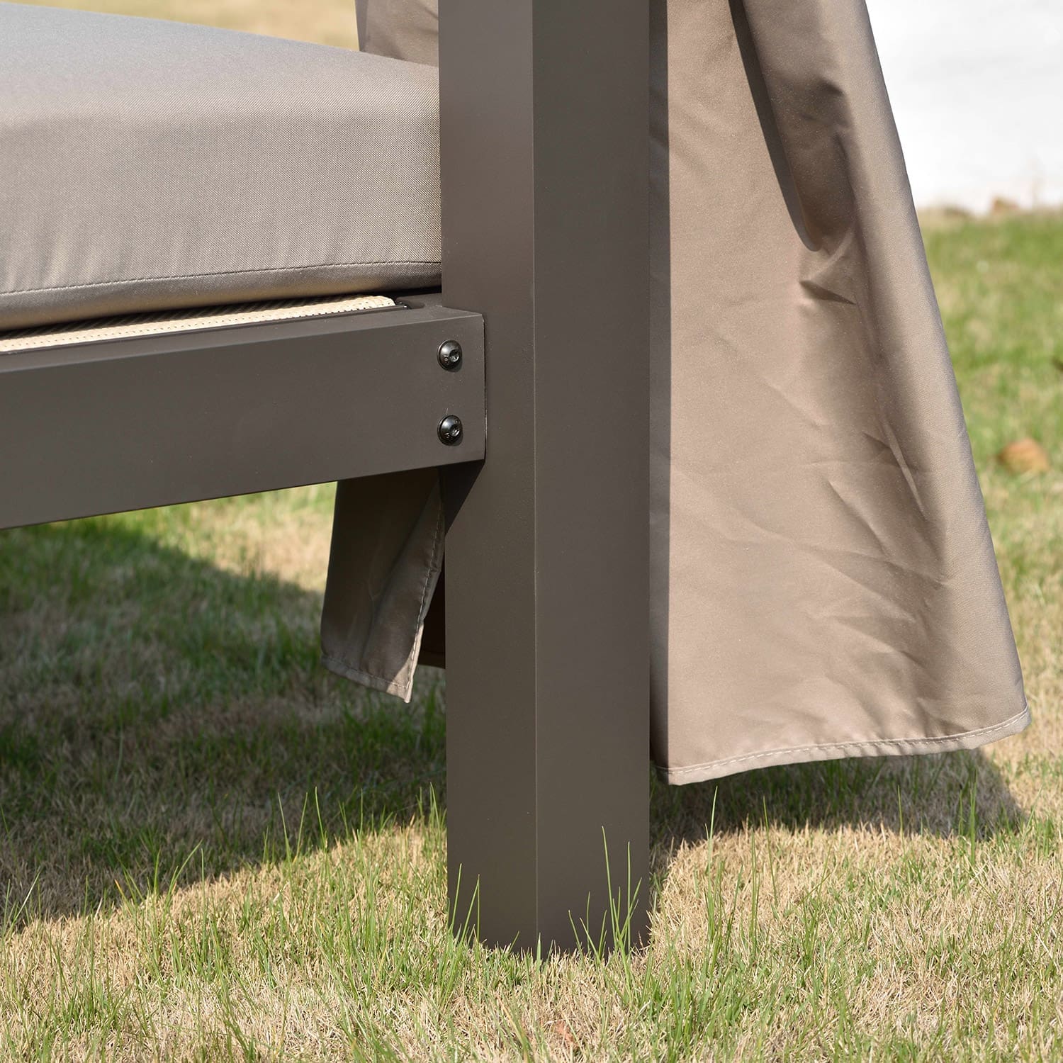 Lebola tugev põhikonstruktsioon on valmistatud terasest ja viimistletud tumepruuni pulbervärviga. Polüesterkangast katus ja külgkardinad pakuvad mõnusat varju päikese eest.