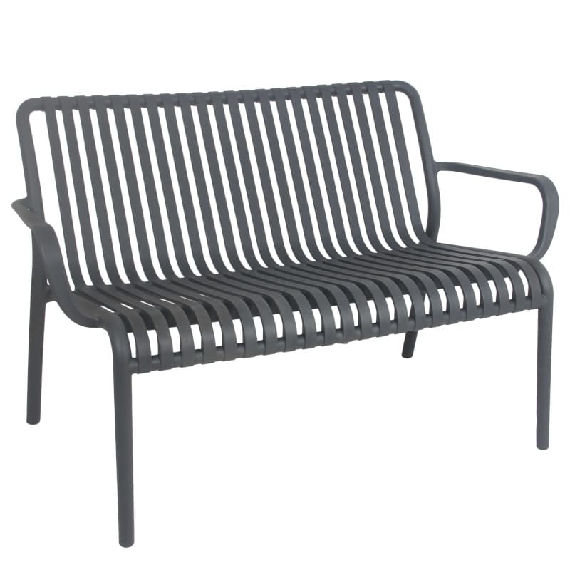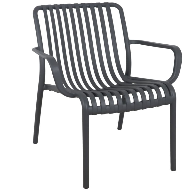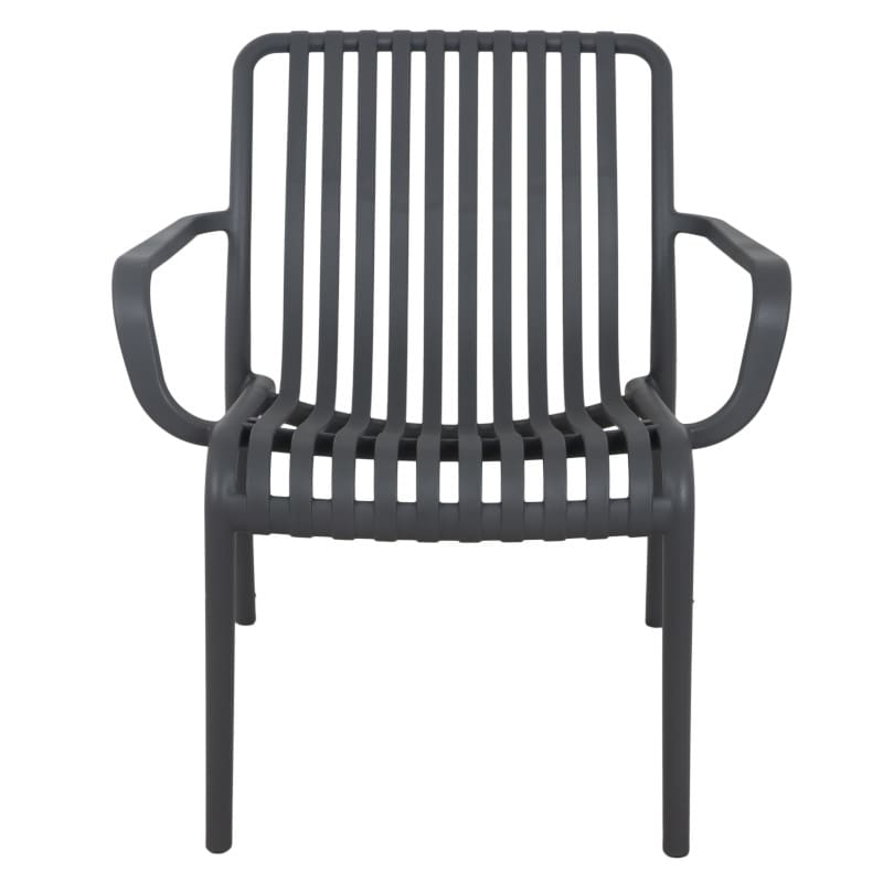 Komplekti kuuluvad kaks tooli, diivan ning kaks lauda. Diivani istme kõrgus on 43 cm, istme sügavus 45 cm laius 119 cm. Suurema laua mõõdud on 54.8x96x40.5 cm, väiksem laud on 44×45.5×40.5 cm. Tooli mõõdud on 70x75x77 cm. Aiamööbel on valmistatud polüpropüleenist ning on tumehallis toonis. Kauakestev, elegantne ja funktsionaalne – ideaalne lisand aeda.