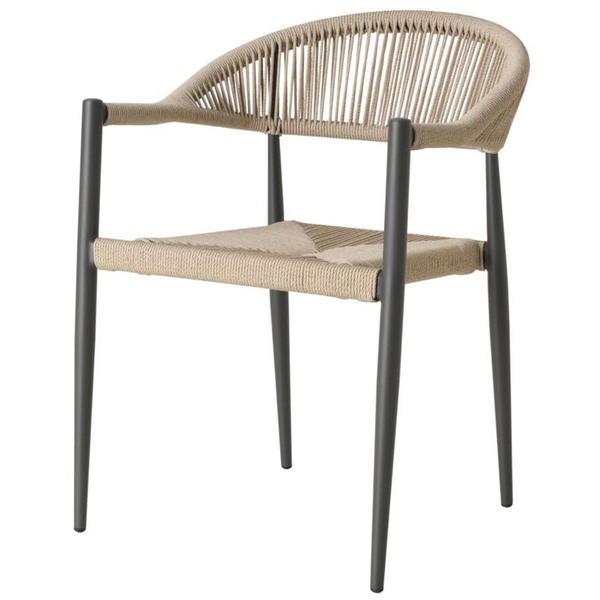 Kaasaegne aiatool ühendab endas kerguse, vastupidavuse ja ajatu disaini. Tooli tumehall alumiiniumraam on tugev ja sobib suurepäraselt välistingimustesse, olles samal ajal kerge ning lihtsasti liigutatav. Iste ja seljatugi on kaetud punutud PE materjaliga, mis lisab toolile naturaalset ilmet ja tagab mugava istumiskogemuse. Istme kõrgus 45 cm, istme sügavus 45 cm. Maksimaalne kandevõime kuni 110 kg. Pehmelt kaarduv seljatugi toetab hästi selga ning muudab tooli sobivaks nii söögilaua äärde kui ka lõõgastumiseks terrassil või aias.