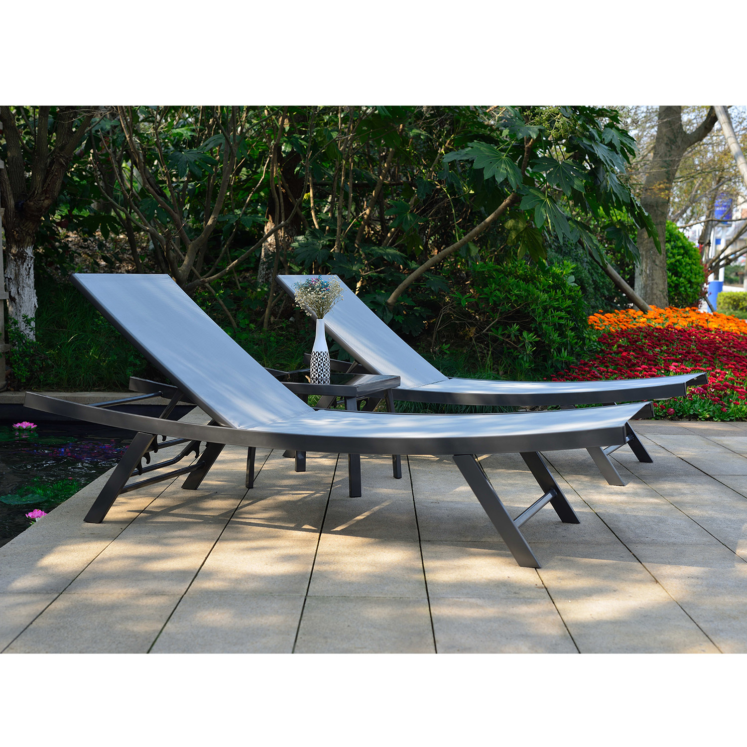 Aiamööblikomplekt ARIO 2 lamamistooli ja laud, hall.