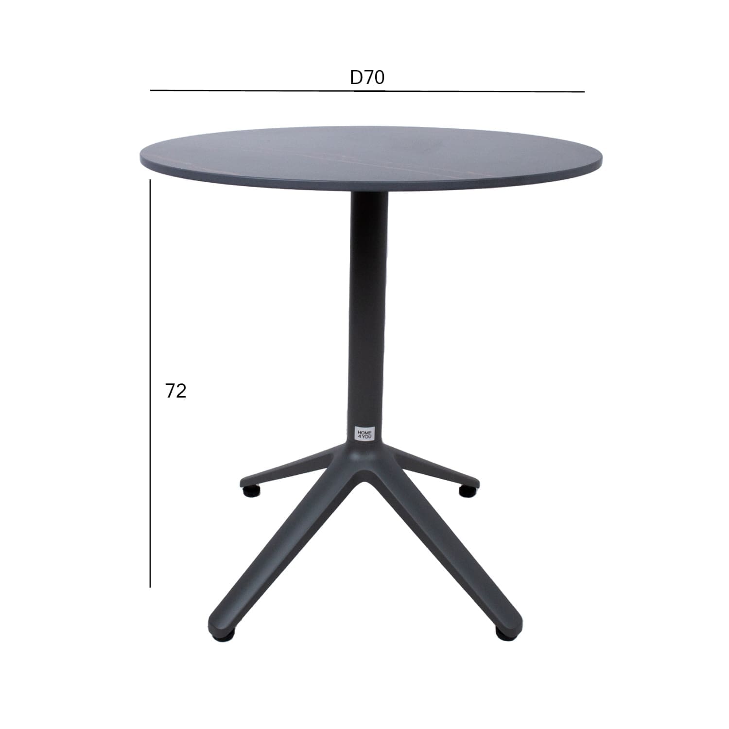 Alumiiniumist lauajalg on viimistletud halli pulbervärviga. Lauajala tugiposti mõõdud D60x1,5mm, 4-haruline jalg 68x68cm, lauaplaadi alusrist 48x48cm.