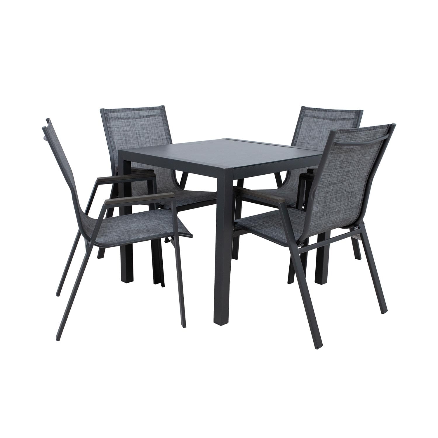 Aiamööblikomplekt DELGADO laud ja 4 tooli, hall