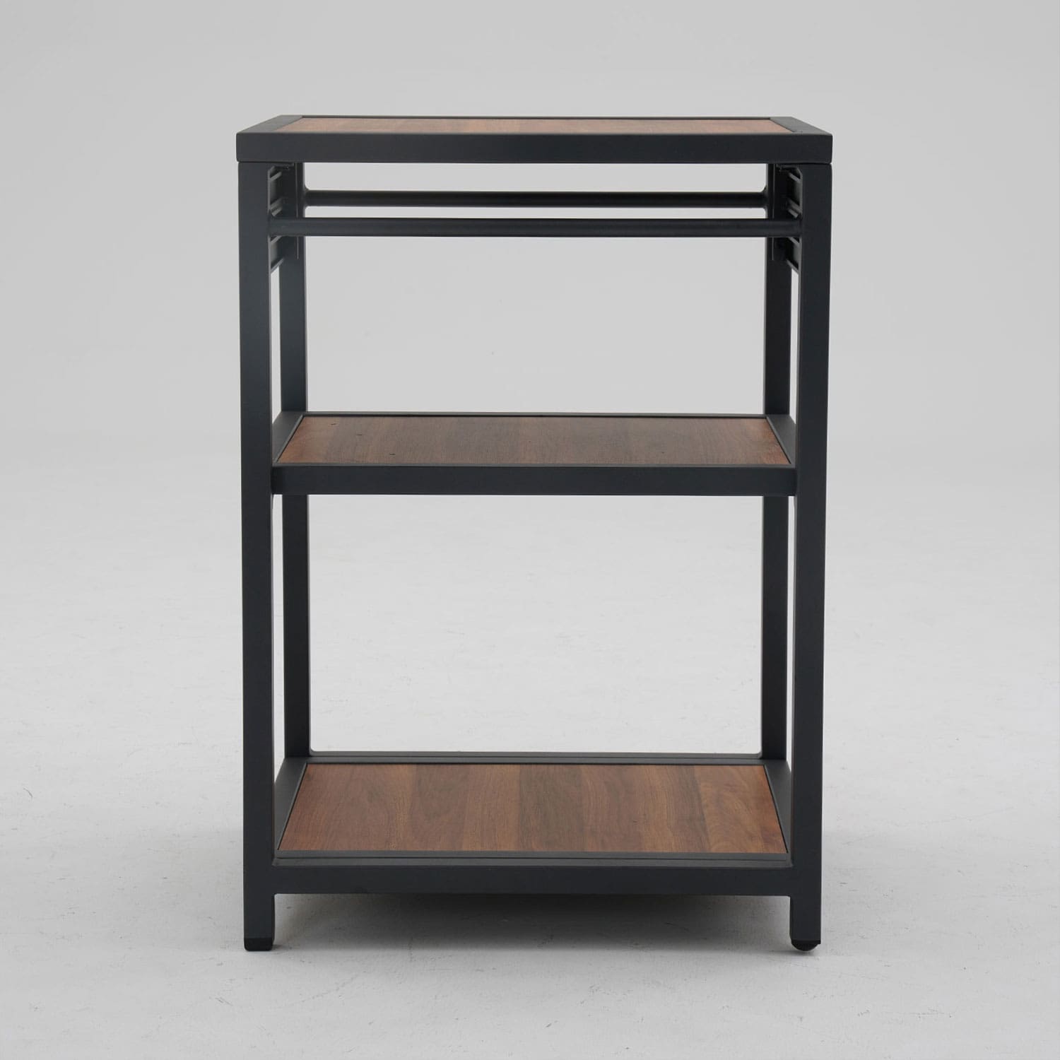 Köögimooduli raam on valmistatud alumiiniumist ja viimistletud tumehalli pulbervärviga. Töötasapind ja riiulid: polükarbonaatplaat. Plaadi pealispinna tekstuur jäljendab naturaalset puitu.