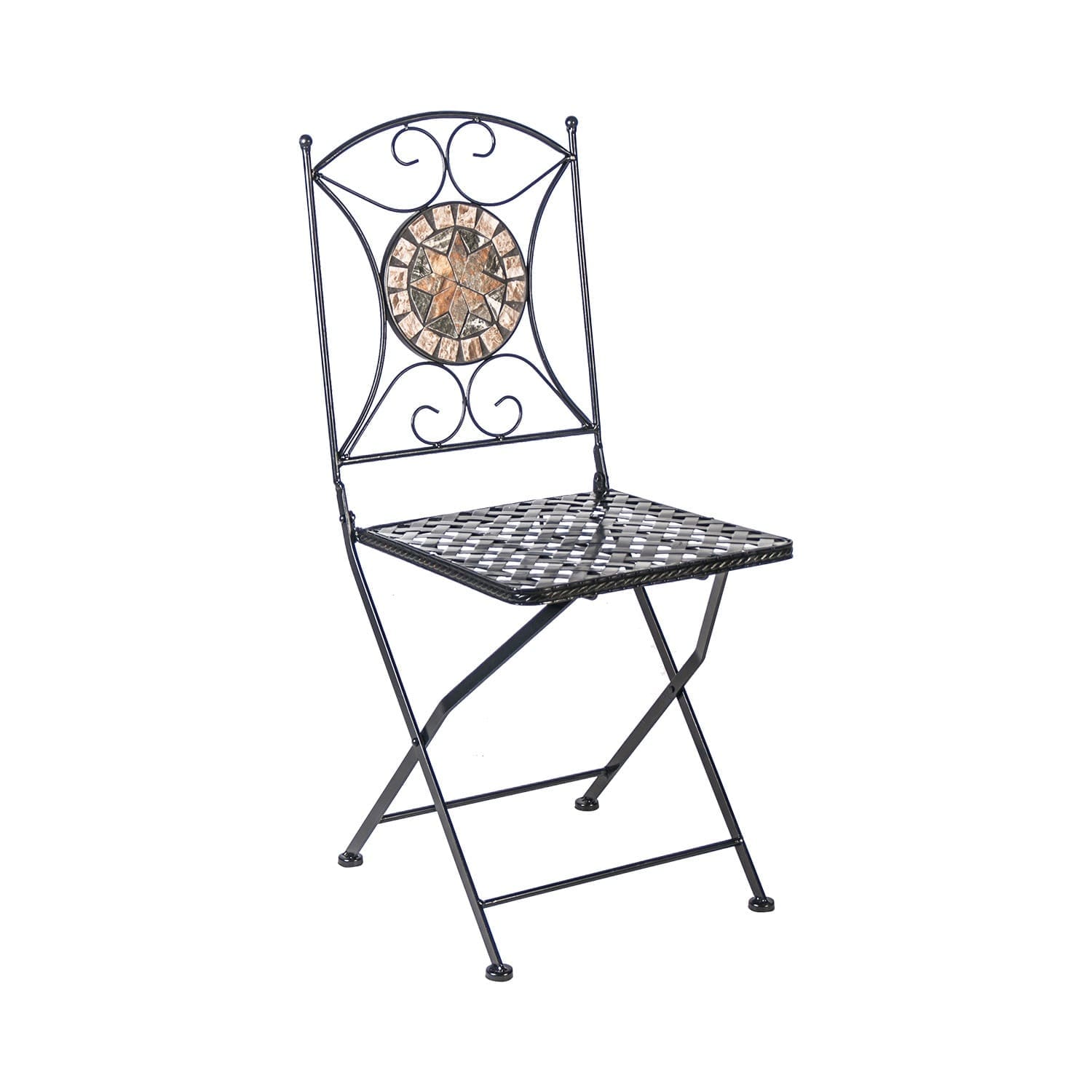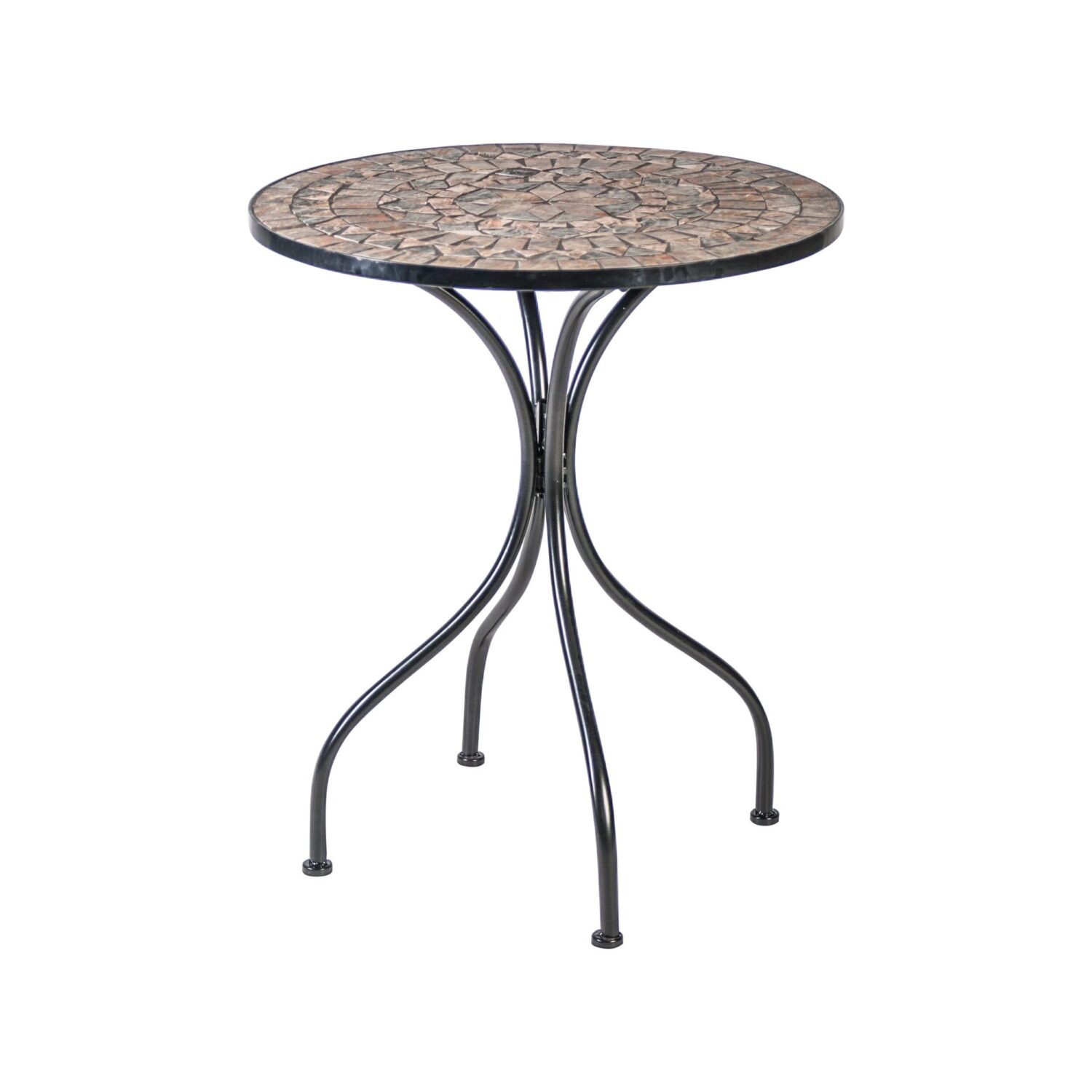 Laua mosaiikplaat ja kokkupandavate toolide seljatoed on kaunistatud pruunides ja hallides toonides keraamiliste plaatidega.