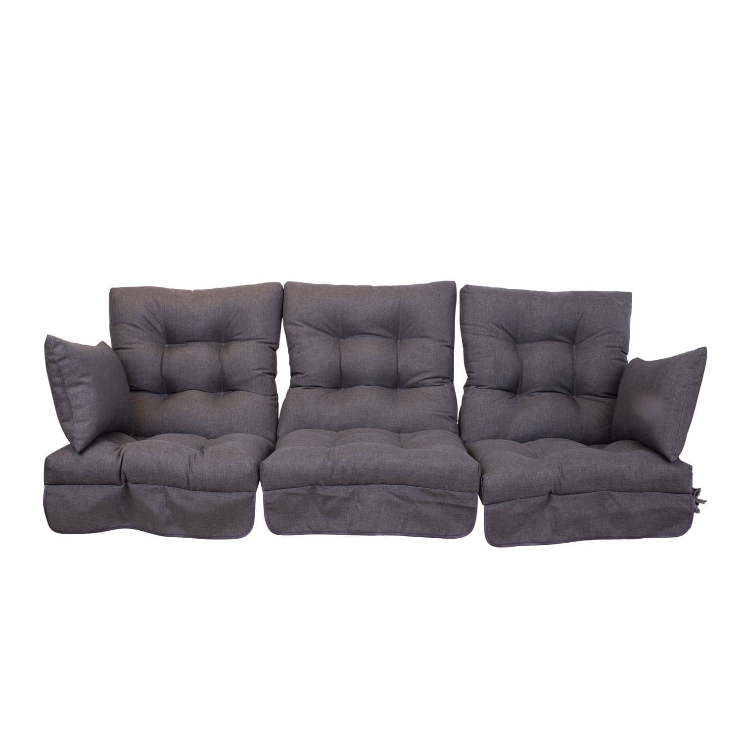 Kiigepadjad ROMA 56x108x10cm/3tk, tumehall. Materjal: 50% polüester, 50% puuvill, kangas 942-880. Täidis: fiiberkiud.