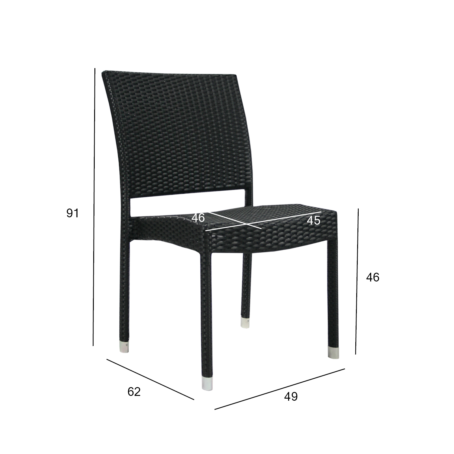 Tool WICKER-3, must. Klassikaline plastikpunutisega aiatool on mugav, vastupidav ja ilmastikukindel ning sobib hästi nii koduaeda kui kohvikusse. Tool on kombineeritav teiste WICKER MIX&MATCH sarja toodetega. Tooli tugev ja stabiilne alumiiniumraam on kaetud plastikpunutisega. Toolid on virnastatavad ning nende hoiustamine on lihtne ja ruumi säästev. Plastikpunutis ei vaja spetsiaalset hooldust. Tooli üldmõõdud on 49x62xH91cm. Istme laius 45cm, istme sügavus 46cm, istme kõrgus 46cm. Seljatoe kõrgus 51cm. Kaalupiirang 100kg. HOIUSTAMINE: suvehooaja lõppedes soovitame aiamööblit hoiustada siseruumides. Puhastage ja kuivatage mööbel enne hoiule panekut. Kasutage hoiustamiseks jahedat, kuiva ning hea ventilatsiooniga ruumi.