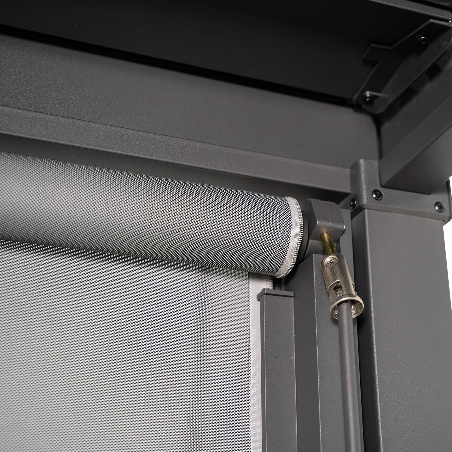 Ruloosein on mugav ja elegantne lahendus, et muuta varikatus MIRADOR-80/88 kiiresti ilmastikuoludele vastavaks. Õhukesest textilene võrgust sein pakub nii varju, kui privaatsust ja kaitseb hästi sääskede eest.