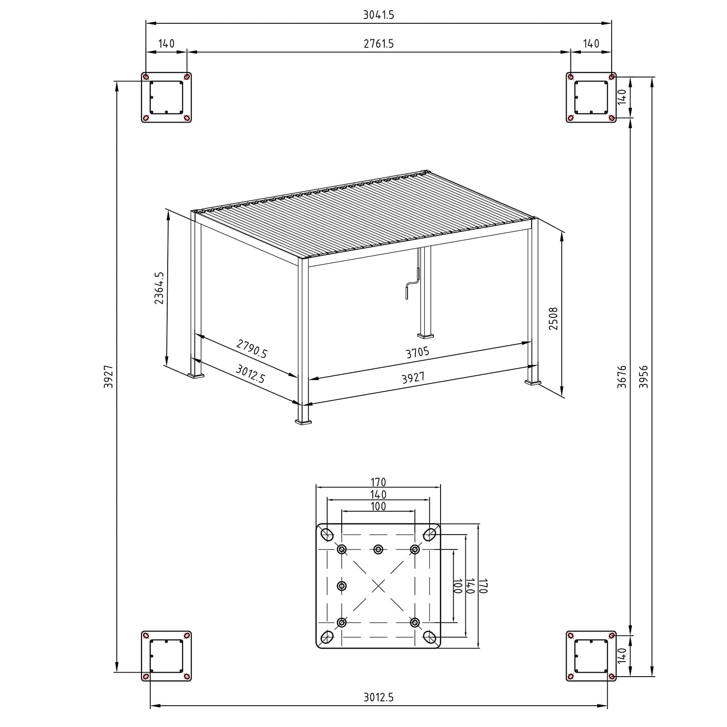 Varikatuse täpsed mõõdud on 3012,5x3927x2508mm.