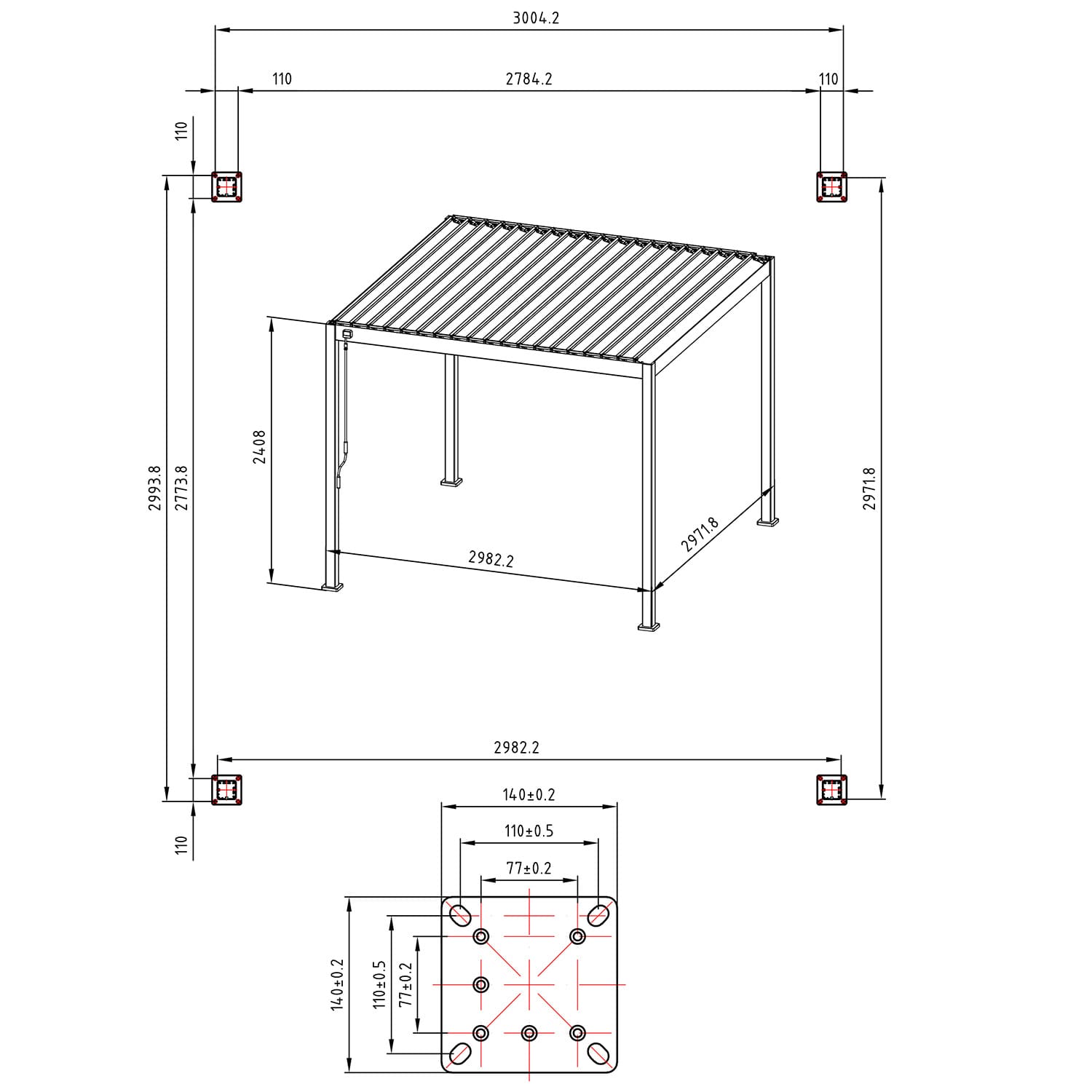Varikatuse täpsed mõõdud on 2982,2×2971,8x2408mm.