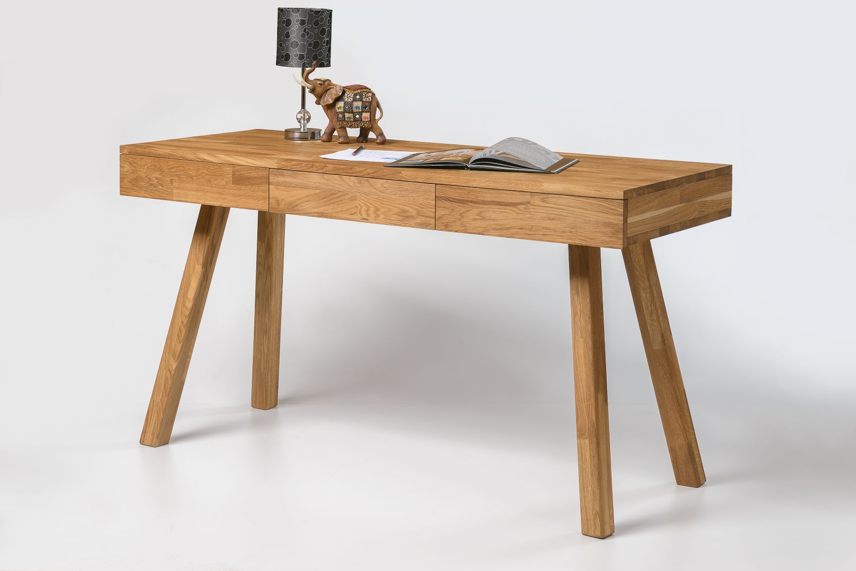 Kirjutuslaud MODERN 1 9985. Tammepuidust kirjutuslaud kolme sahtliga, mis liiguvad metall-siinidel.