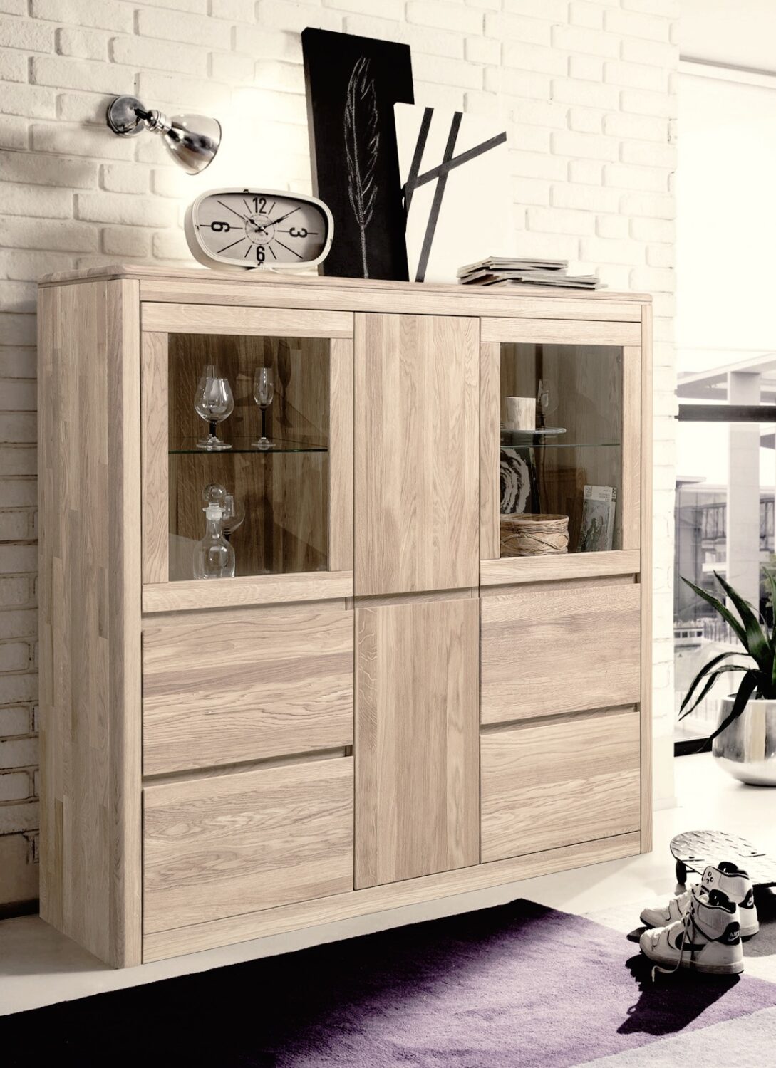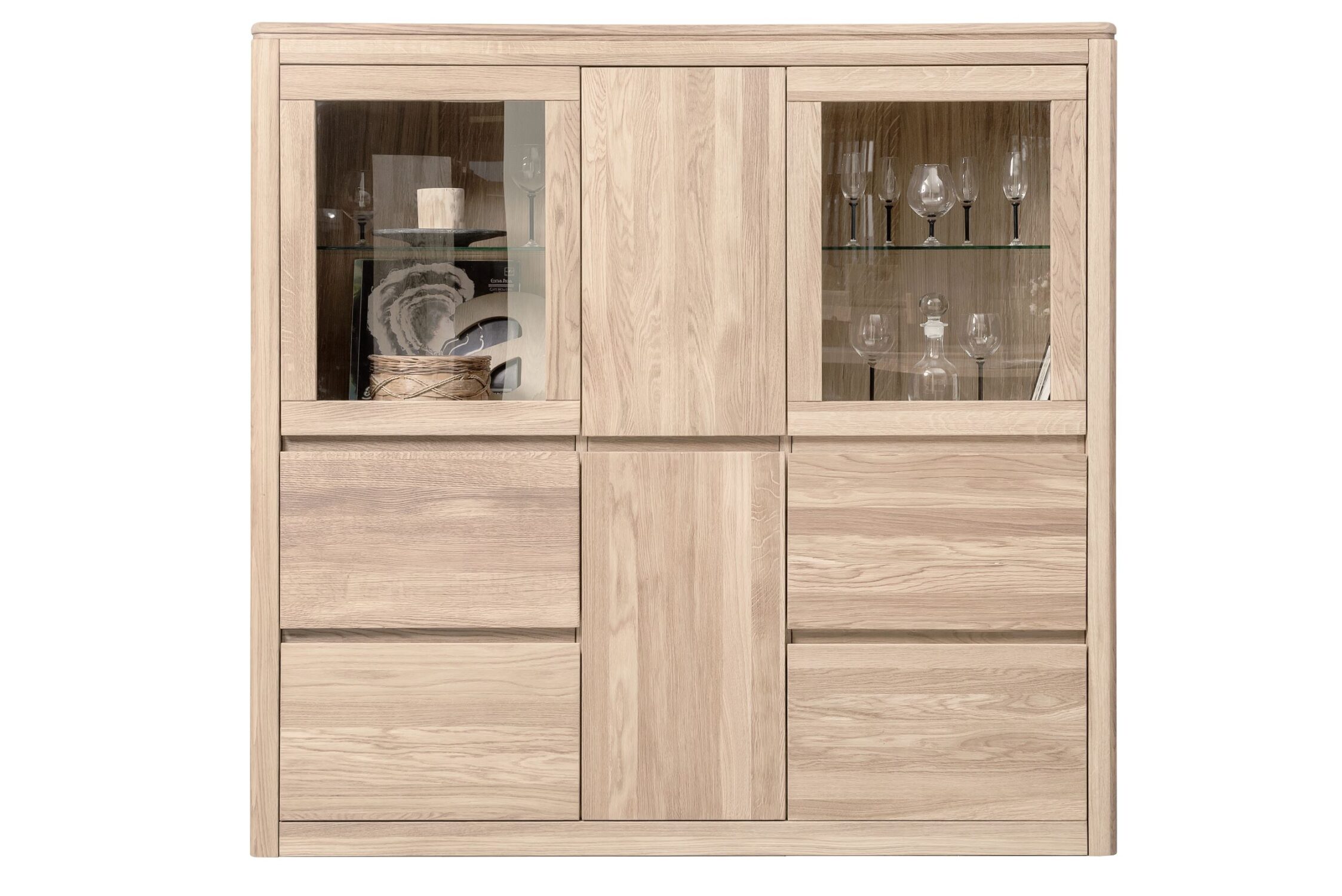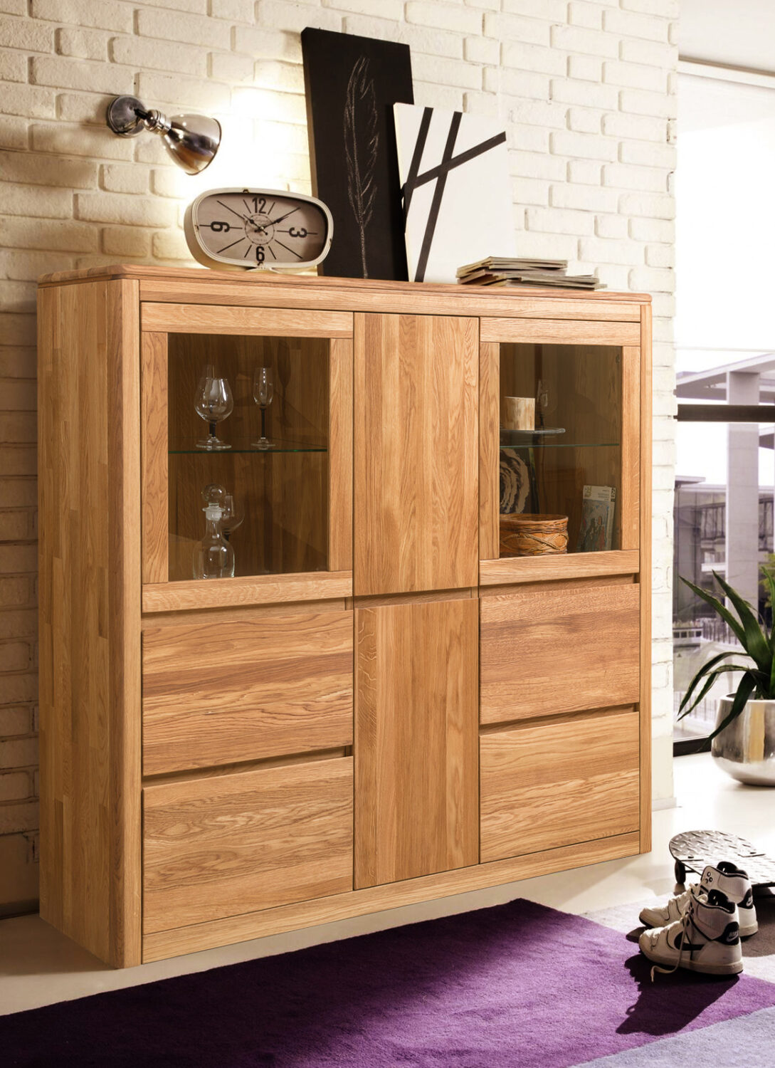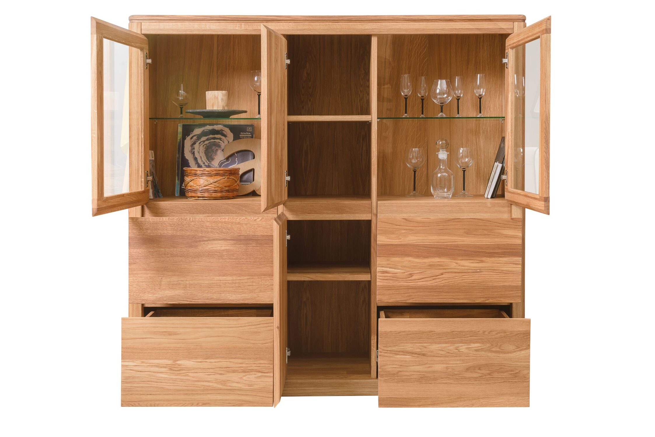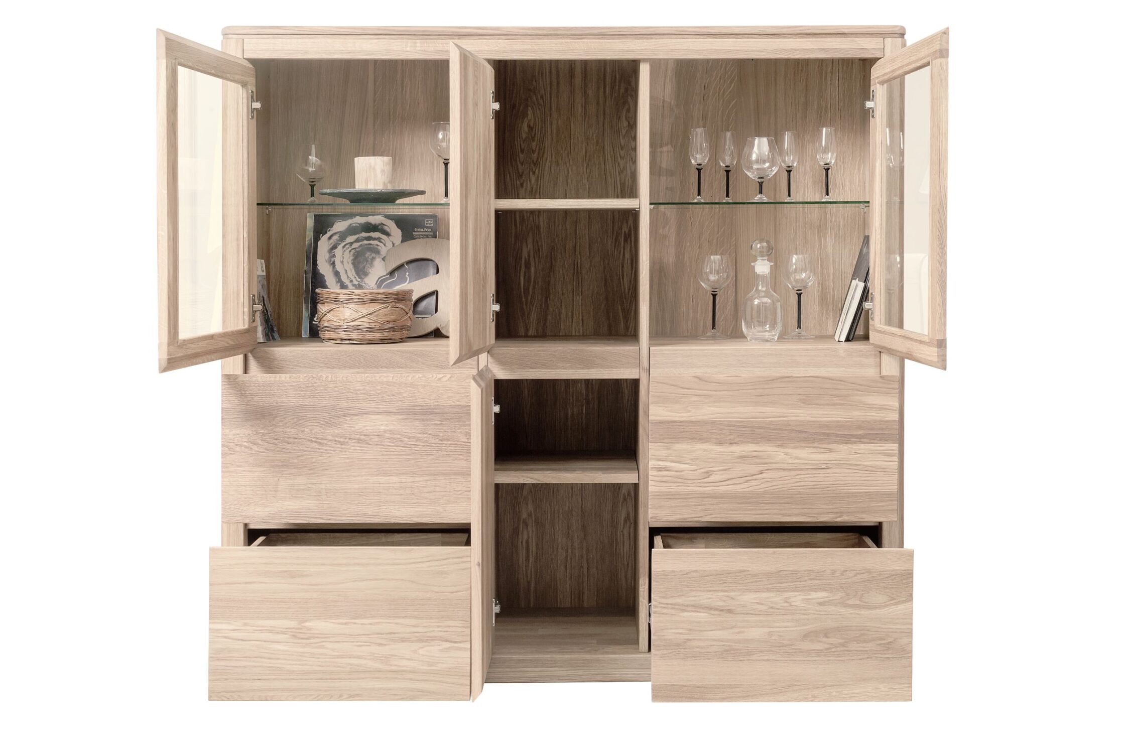 Kahe ukse ja nelja sahtliga vitriinkapp on praktiline mööbliese elutuppa