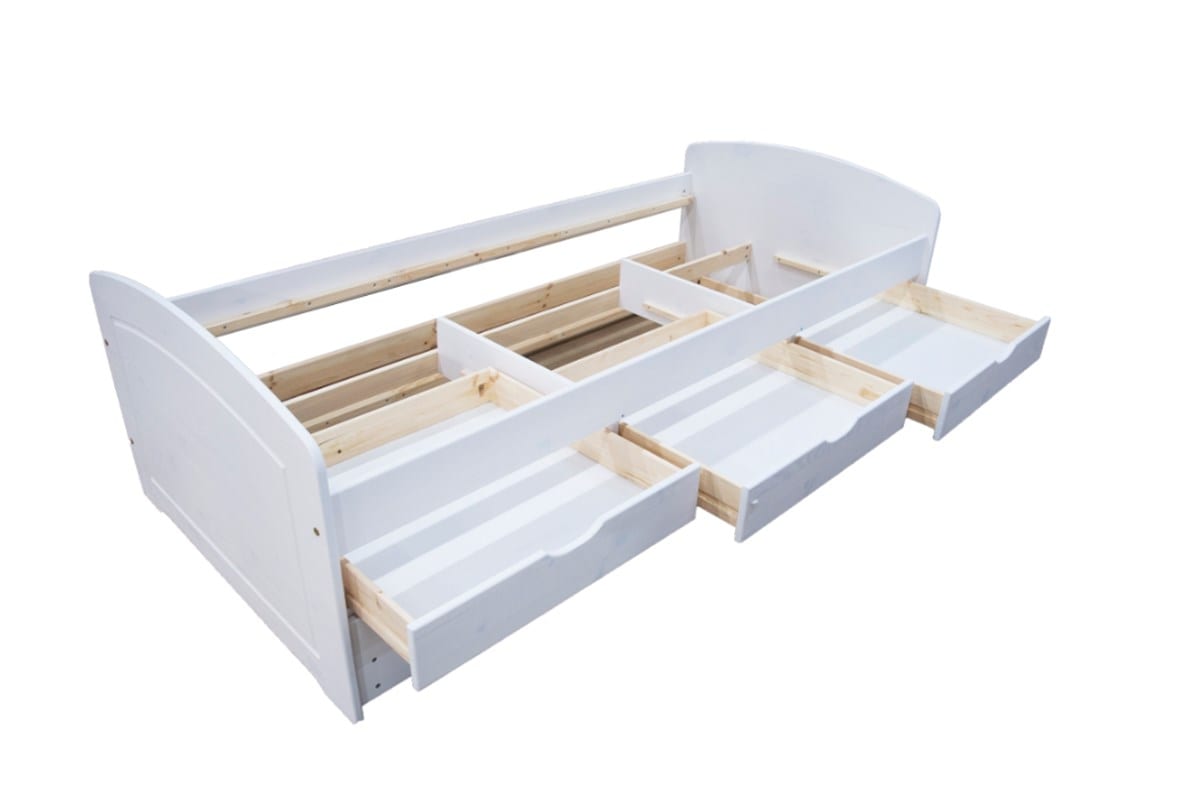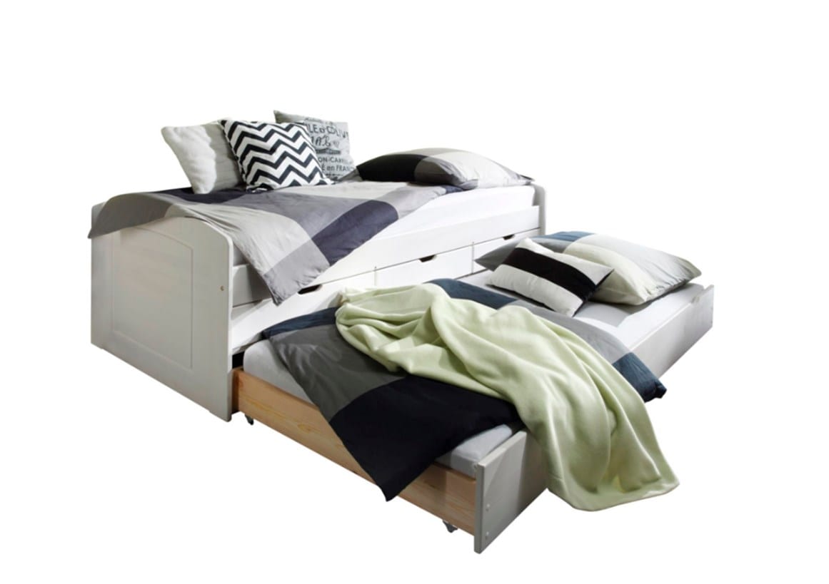 Voodi Twin, mille komplekti kuulub ratastel lisavoodi, kolm sahtlit ja voodilipid. Madratsid ei kuulu komplekti. Vali sobiv madrats mõõdus 90×200 cm ja lisavoodile 90×200 ja kõrgusega max 15 cm.