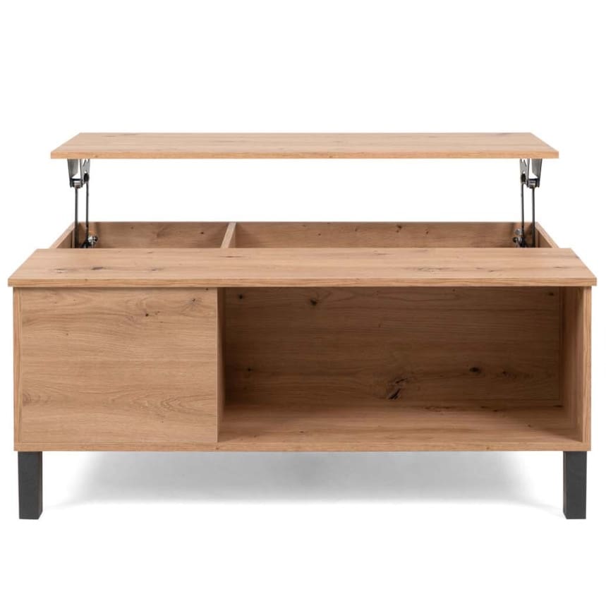 Tänu tõstetavale lauaplaadile saab diivanilauast hetkega mugava pinnana kasutada nii õhtusöögiks kui ka sülearvutiga töötamiseks. Tõstetud pealispinna kõrgus: 62 cm. See on ideaalne lahendus, kui soovid ühendada lõõgastavad telekaõhtud ja praktilise kasutuse.