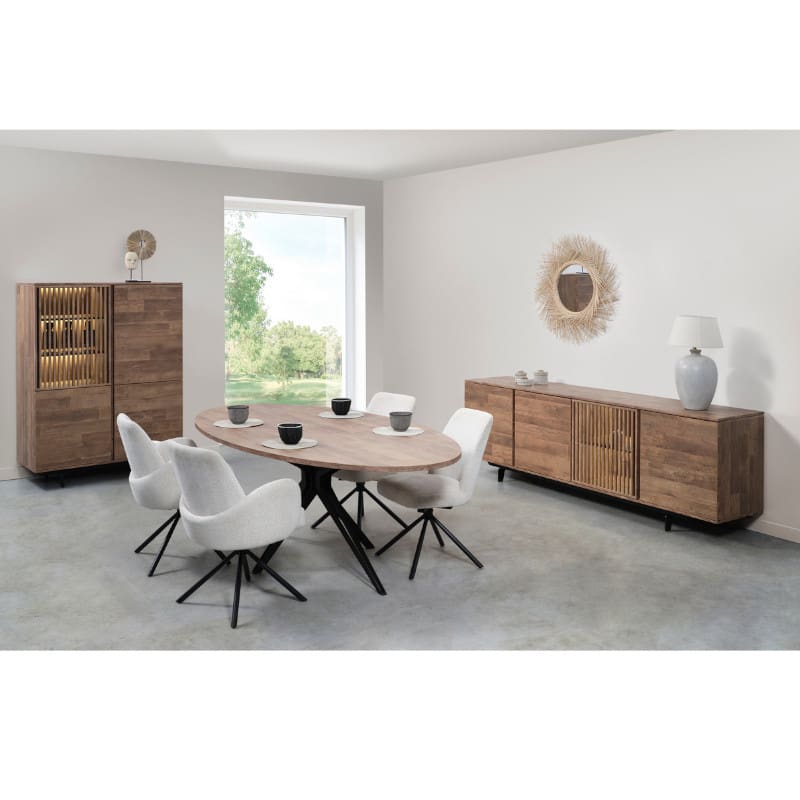 Kogu sarja mööbel on valmistatud melamiinkattega mööbliplaadist. Puhvetkapil on neli ust ning kolme ukse taga on üks vaheriiul ja võrestikuga ukse taga kaks. Valgustus kuulub komplekti. Ustel push-to-open süsteem.