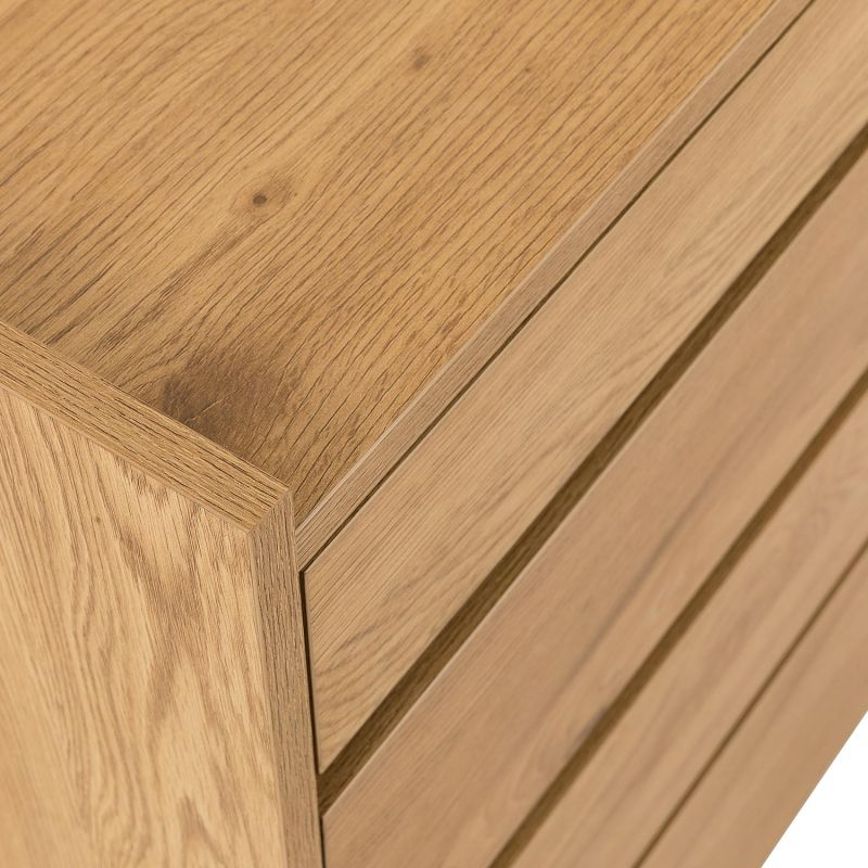 Kummut SACHA 4-sahtliga 75x40xH89cm, melamiin tammedekooriga. Kummut on valmistatud melamiinkattega mööbliplaadist. Sahtlid liiguvad metallsiinidel.