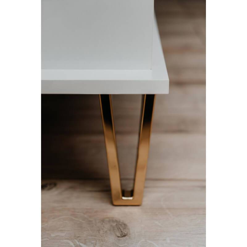 TV-alus on valmistatud kvaliteetsest kõrgläikega 19 mm mööbliplaadist.