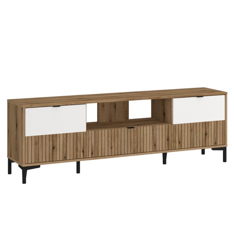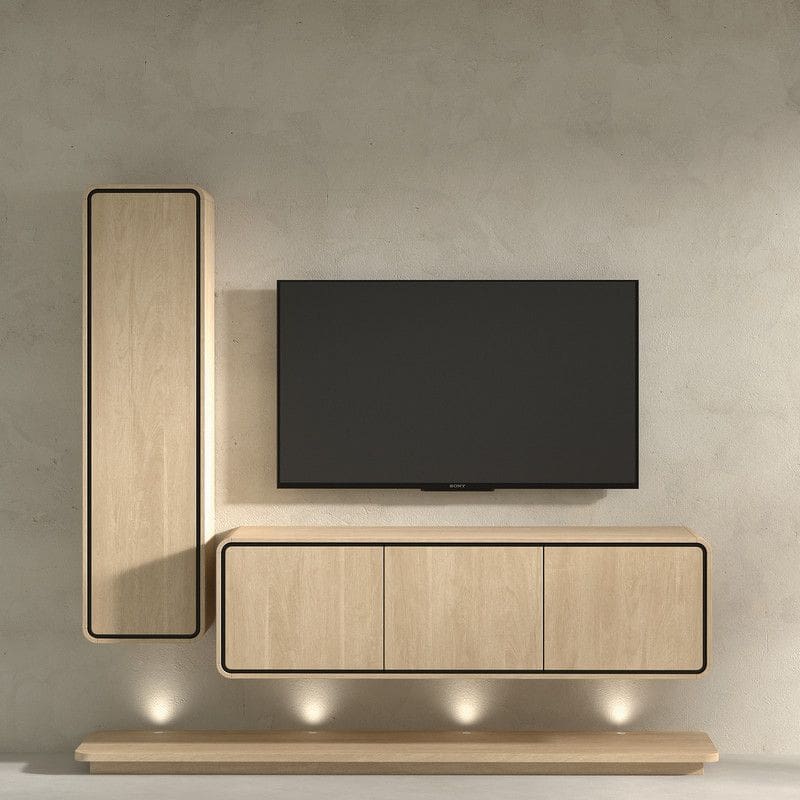 Kaunis puidumuster koos mustade detailidega rõhutab Lago sarja ajatut iseloomu, sobitudes suurepäraselt nii skandinaavialikku kui ka modernsesse kodusse. Praktilisus ja esteetika on siin ühendatud viisil, mis pakub nii silmailu kui igapäevast funktsionaalsust. Tv-alus iga ukse taga on üks vaheriiul. Ustel push-to-open süsteem. Tv-alus tuleb kinnitada seinale.