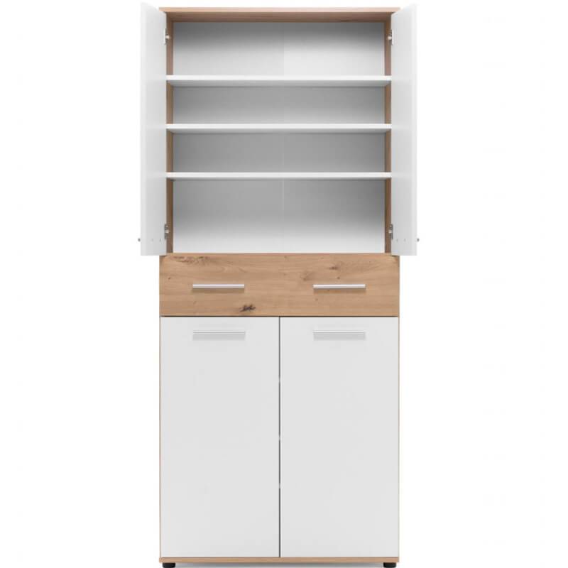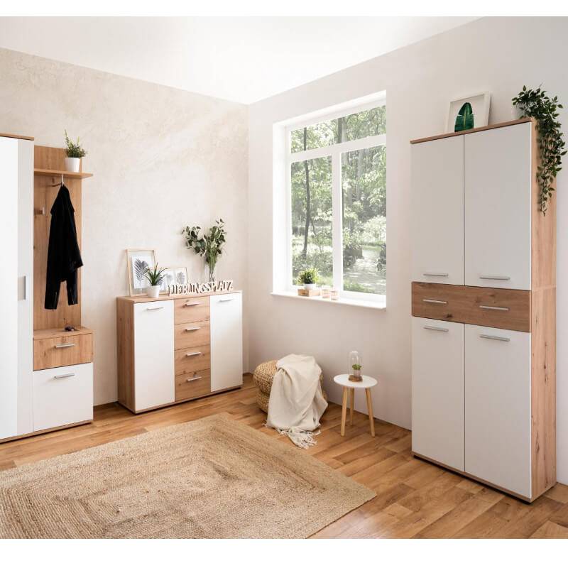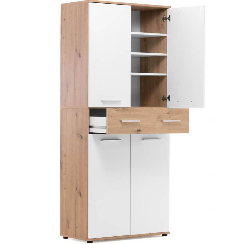 Valmistatud kvaliteetsest ning vastupidavast puitlaastplaadist ning viimistletud artisan tamme imitatsiooniga ja valge tooniga.