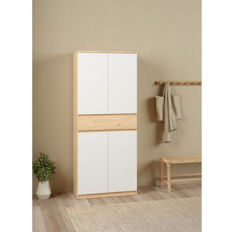 Kogu sarja mööbel on valmistatud mööbliplaadist ning on saadaval erinevate viimistlustega. Kapil on üleval ja all neli vaheriiulit ning keskel üks metallsiinidel liikuv sahtel.