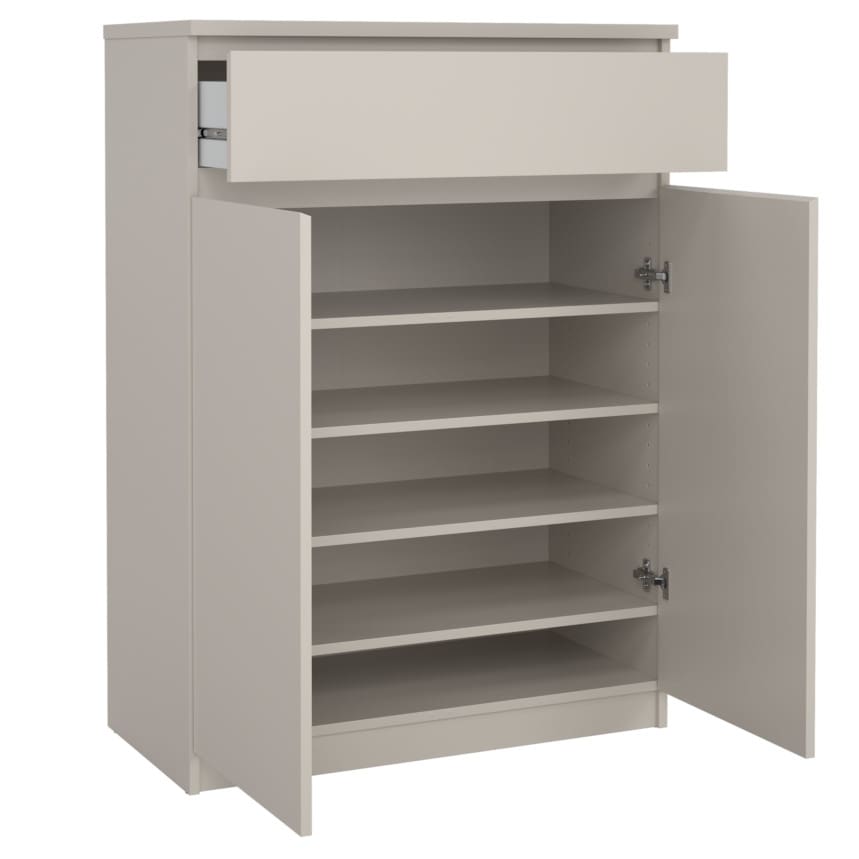 Kogu sarja mööbel on valmistatud mööbliplaadist ning on saadaval erinevate viimistlustega. Kapil on ülemises osas üks metallsiinidel liikuv sahtel. Kahe ukse taga on neli vaheriiulit. Kapp mahutab olenevalt jalanõude suurusest umbes 15 paari jalanõusid.