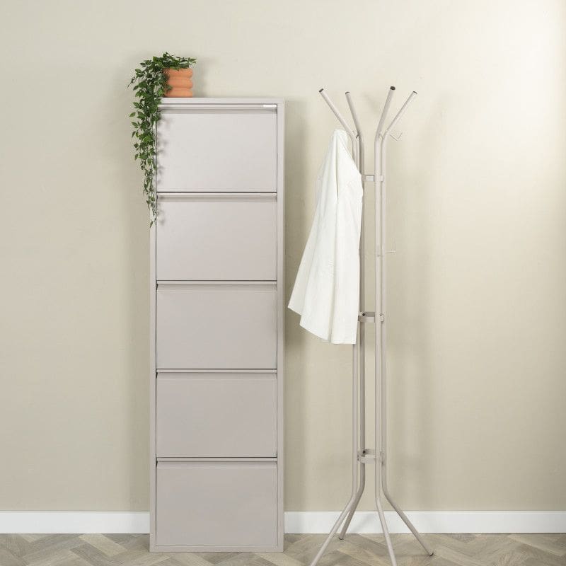 Jalatsikapp on valmistatud kvaliteetsest terasest ja viimistletud pulbervärviga. Kapp kinnitatakse seinale. Kapil on viis vahet, kuhu jalanõusid paigutada.