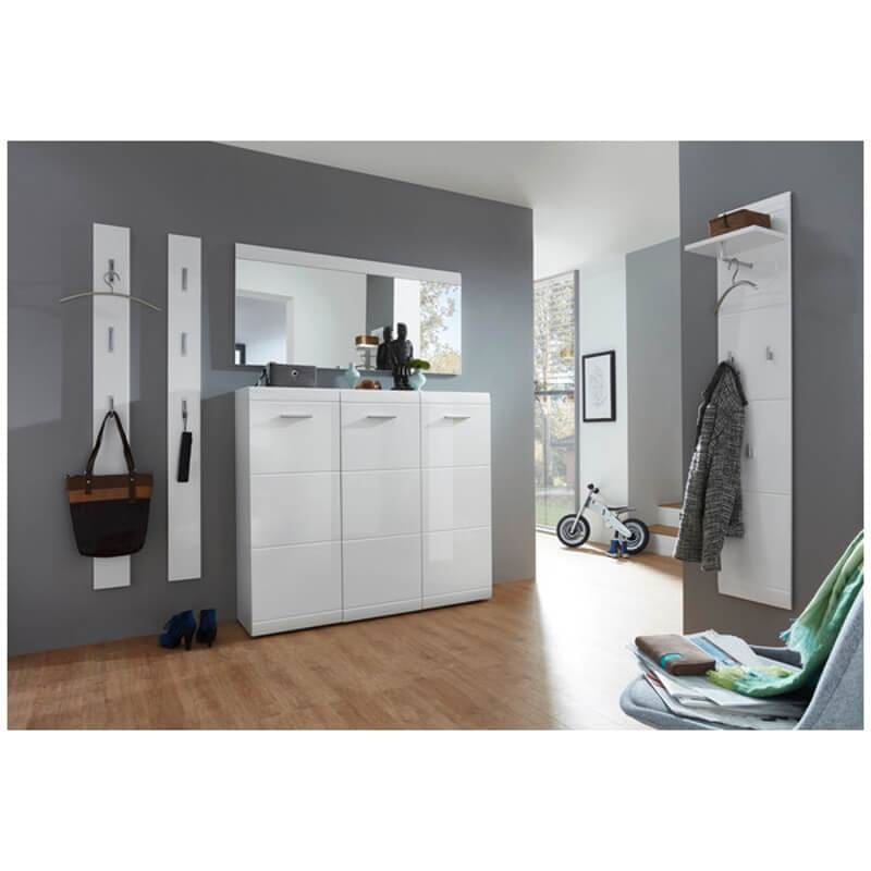 Garderoobipaneel on valmistatud vastupidavast lamineeritud puitlaastplaadist ning viimistletud valge tooni ning kõrgläikega.