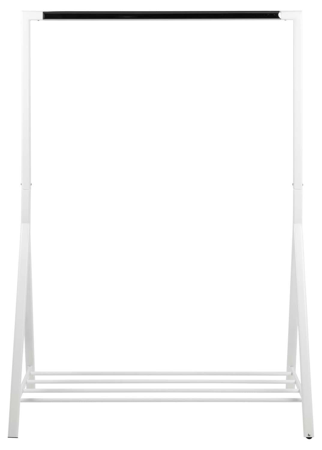 Riiete stange BRENT 117x59xH165cm. Stange sobib suurepäraselt riiete organiseerimiseks ja ka eksponeerimiseks. See on valmistatud valgest metallist, kroomitud detailidega. Stangel on ka jalatsiriiul, mis lisab hoiuruumi ja muudab stange veel stabiilsemaks. Materjal: metall, värv: valge/kroom. HOOLDUS: Kasutage igapäevaseks puhastamiseks seebiveest kuivaks väänatud lappi. Rooste vältimiseks pühkige pind lapiga kuivaks. Ärge hõõruge pinda kõvade esemetega.