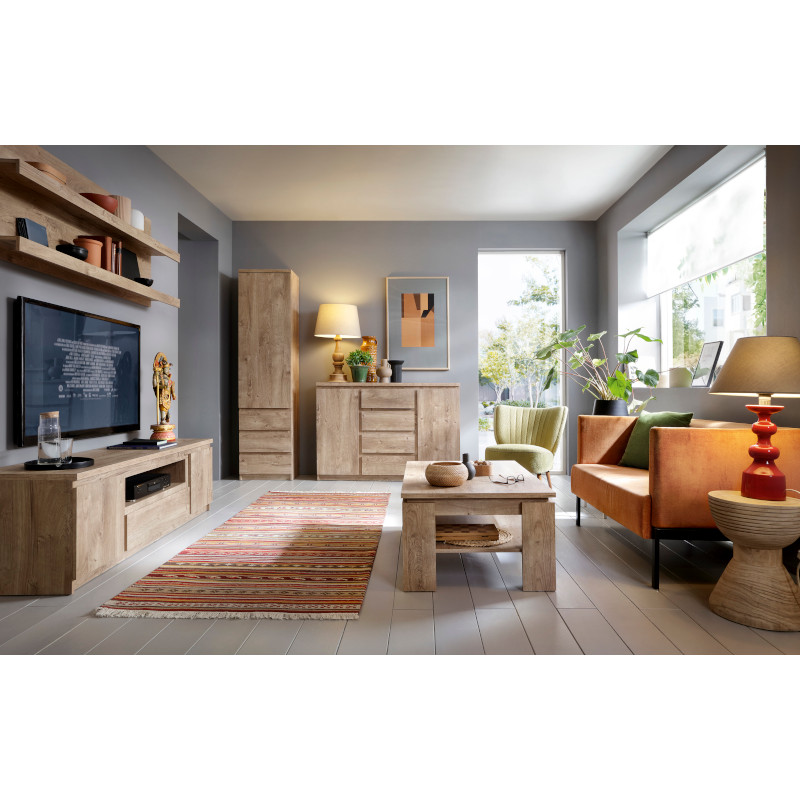 Kogu sarja mööbel on valmistatud lamineeritud puitlaastplaadist, mis on vastupidav mehaanilistele kahjustustele. Riiul pakub kolme praktilist sahtlit ning ukse taga kolme vaheriiulit.