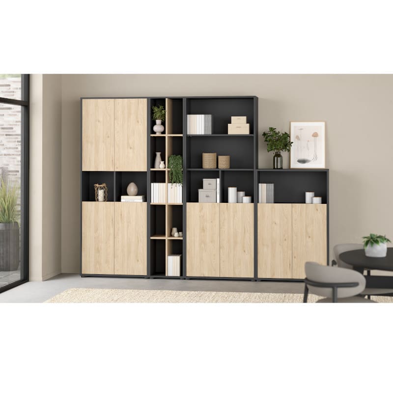 Raamaturiiulil on kaks riiulit, sealhulgas üks fikseeritud riiul ja üks reguleeritav riiul, mis võimaldab teil paigutust oma eelistuste järgi kohandada. Selle funktsionaalse raamatukapiga korraldage oma ruum nii, nagu soovite. Riiulile sobivad ette ka sama sarja uksed, nii saab muuta hoiuruumi privaatsemaks, koodidega 562492 ja 562493.