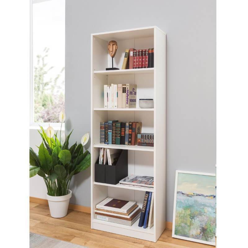 Klassikalise välimusega kõrge raamaturiiul. Neutraalse välimuse tõttu on riiulit lihtne kokku sobitada muu mööbliga. Riiul on valmistatud valget värvi puitlaastplaadist. Raamaturiiulil on neli reguleeritava kõrgusega vaheriiulit, mida saab kolmele tasandile reguleerida. Sarnane toode on saadaval teistes mõõtudes ja värvivalikus.