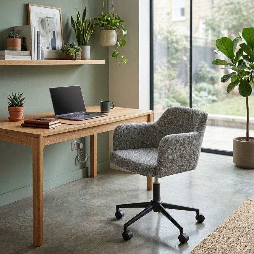 kaasaegne ja mugav töötool ühendab endas pehme istumismugavuse ning praktilise funktsionaalsuse. Ümarate joontega seljatugi ja käetoed loovad hubase ning toetava istumiskogemuse, sobides ideaalselt nii kodukontorisse kui ka tööruumi.