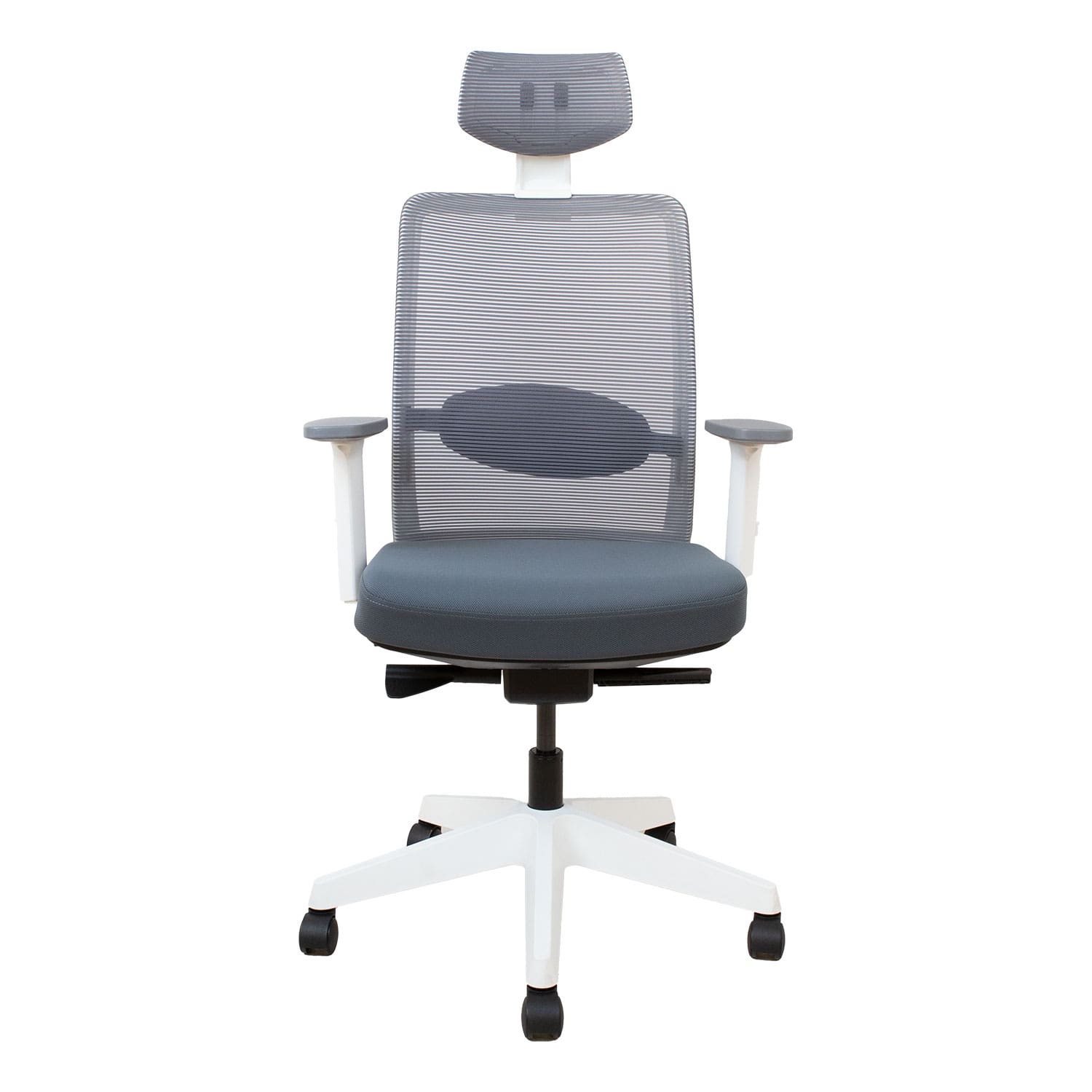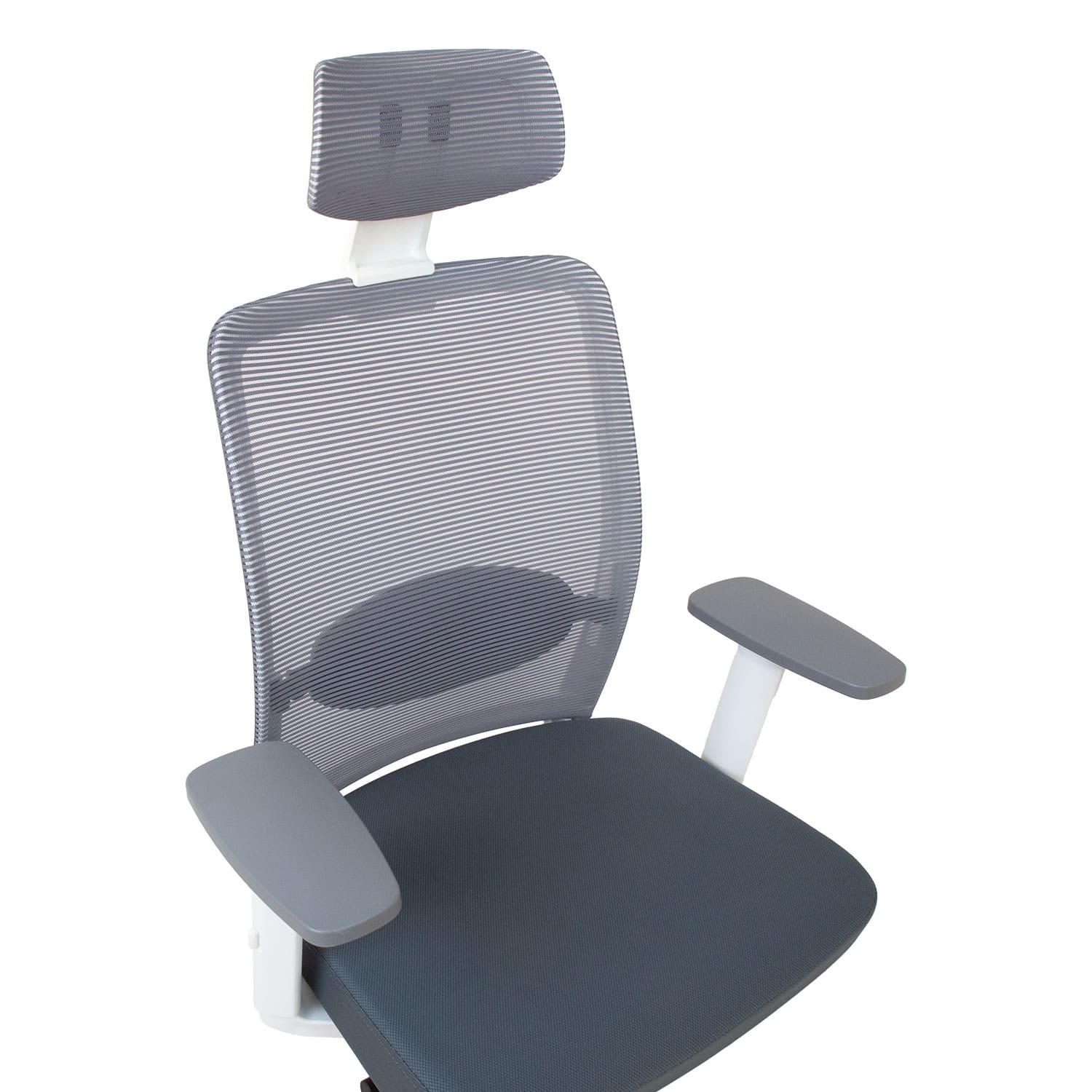 Töötool ANGGUN hall, valge raamiga. Iste on kaetud on polüesterkangaga, 50 000 Martindale’i. Selja- ja peatugi on kaetud polüestervõrkkangaga, mis tagab hea õhu liikuvuse. Kaalutundlik sünkroonmehhanism korrigeerib kiike jäikuse automaatselt vastavalt istuja kaalule. Reguleeritav nimmetugi. Istme sügavus on reguleeritav vahemikus 39,5-47,5cm. Istme kõrgus on reguleeritav gaasamordi abil. Käetoed on valgest ja hallist plastikust. Käetugede sügavus ja pöördenurk on reguleeritavad, kõrgus on reguleeritav vahemikus 21-31cm. Peatoe kõrgus on reguleeritav. 5-haruline plastikust jalarist on musta värvi, D70cm. Toolil on plastikrattad, 50mm. Tooli üldmõõdud on 70x70xH116-130,5cm. Tooli kõrgus on 116-130,5cm, seljatoe kõrgus 52,5cm (koos peatoega 72-76,5cm), istme kõrgus 42-52cm, istme sügavus 39,5-47,5cm, istme laius 45cm. Kaalupiirang 120kg.