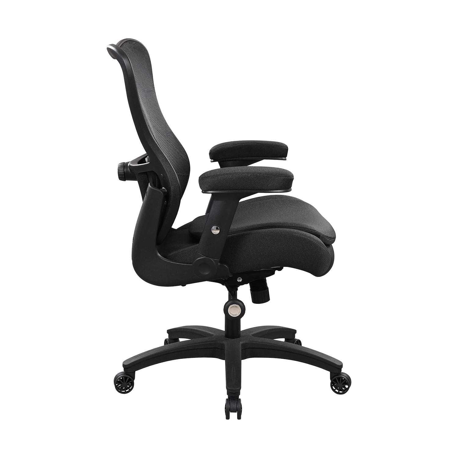 Seljatugi: selga hästi toetav plastikust seljatoeraam on kaetud hingava polüestervõrkkangaga.