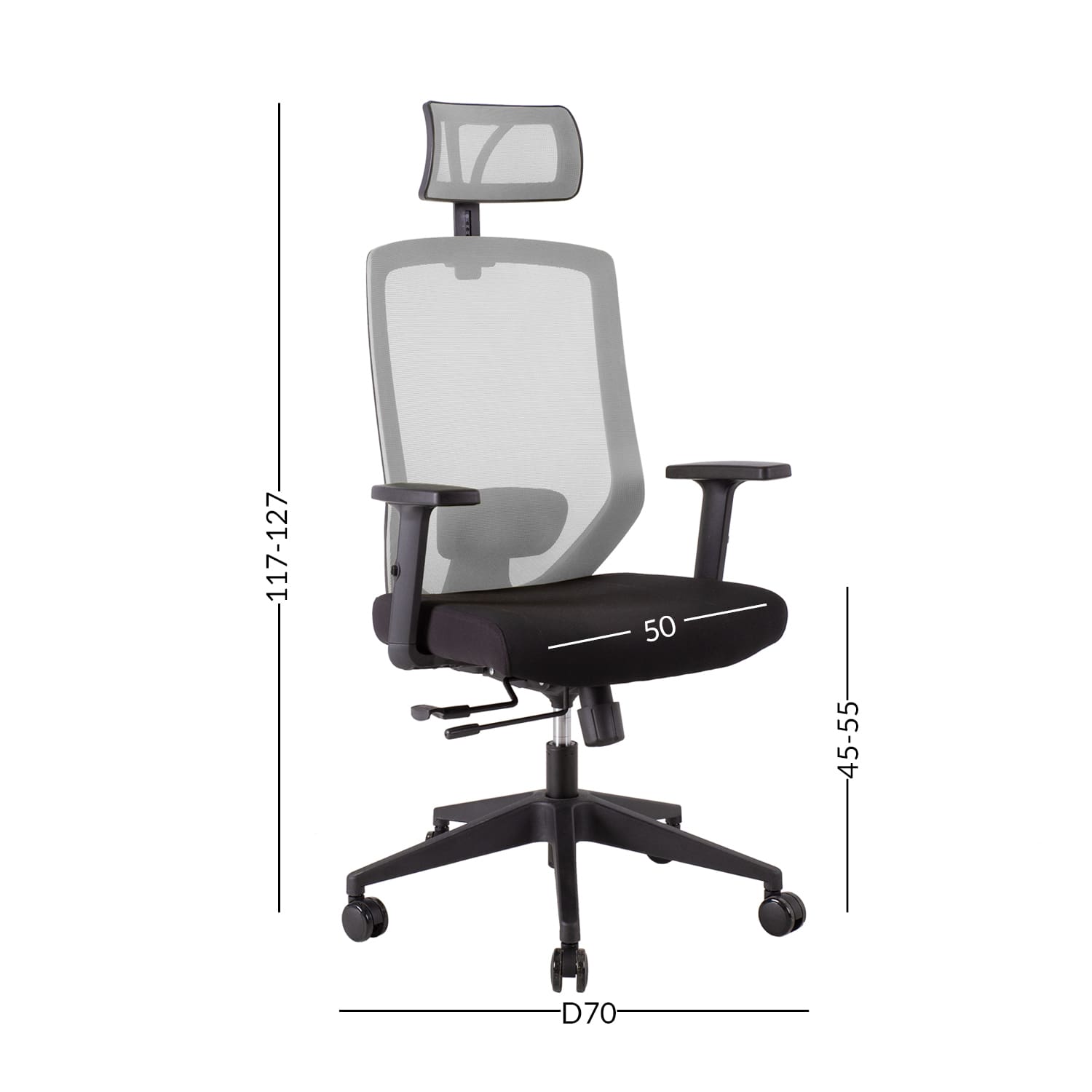 Tooli üldmõõdud: 64 x 64 x H115 – 125 cm.