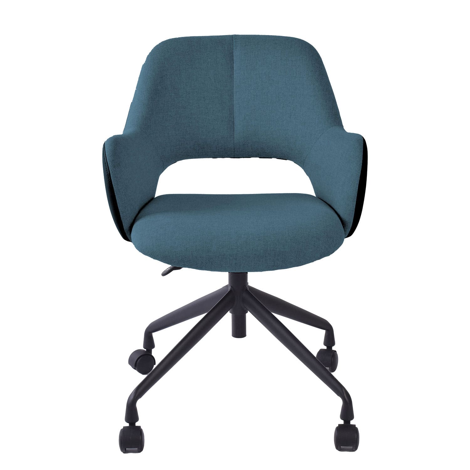 Töötool KENO ratastega 57x62xH82-88cm, sinine/hall. Tooli iste ja seljatugi on kergelt polsterdatud ja kaetud sinise sametise polüesterkangaga. Seljatoe väliskülg on kaetud halli kunstnahaga. Tooli istme kõrgus on reguleeritav gaasamordi abil. Tooli neljaharuline plastikratastega metallist jalg on viimistletud musta pulbervärviga.