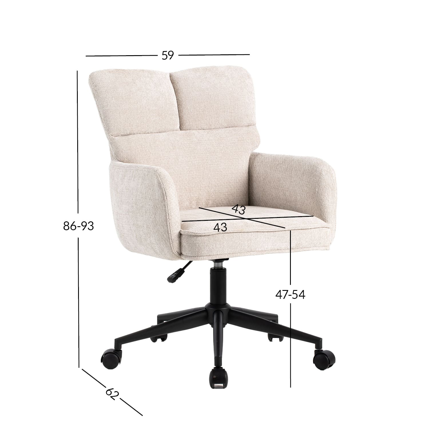 Tooli üldmõõdud: 59 x 62 x H86-93 cm.
