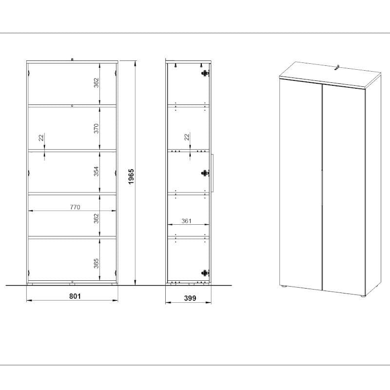 Kapp on valmistatud kvaliteetsest melamiinkattega mööbliplaadist, mis tagab vastupidavuse ja elegantse välimuse. Kapp aitab luua tervikliku kontorilahenduse, pakkudes maksimaalselt ruumi erinevate dokumentide hoiustamiseks riiulitel.