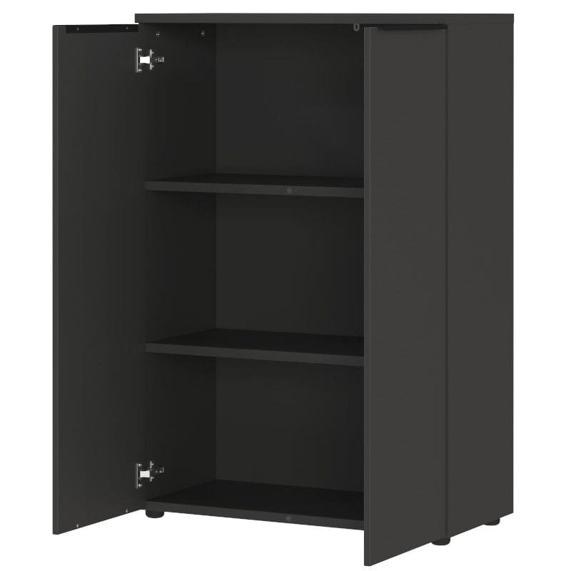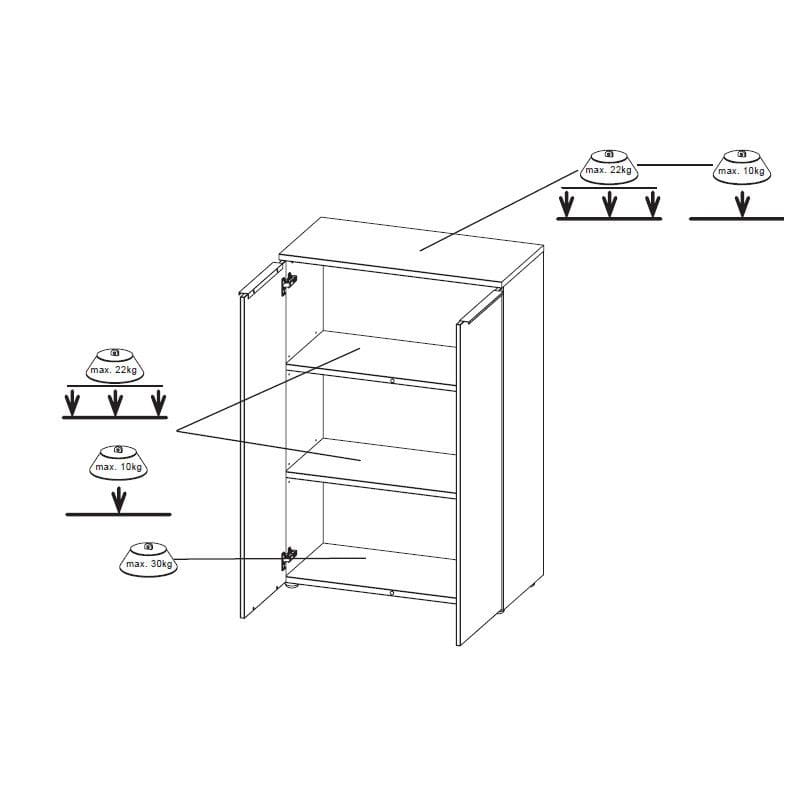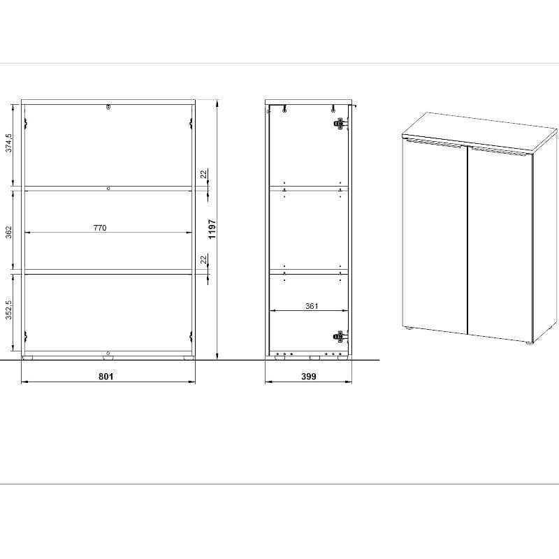 Kapp on valmistatud kvaliteetsest melamiinkattega mööbliplaadist, mis tagab vastupidavuse ja elegantse välimuse. See kapp aitab luua tervikliku kontorilahenduse, pakkudes piisavalt ruumi erinevate esemete ja dokumentide hoiustamiseks.