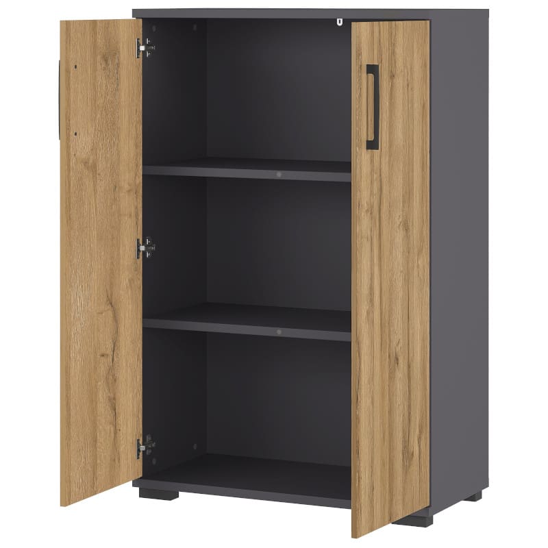 Kapp on valmistatud melamiinkattega mööbliplaadist. Kahe ukse taga on kaks vaheriiulit, pakkumaks ruumi isiklikele esemetele ja dokumentidele.