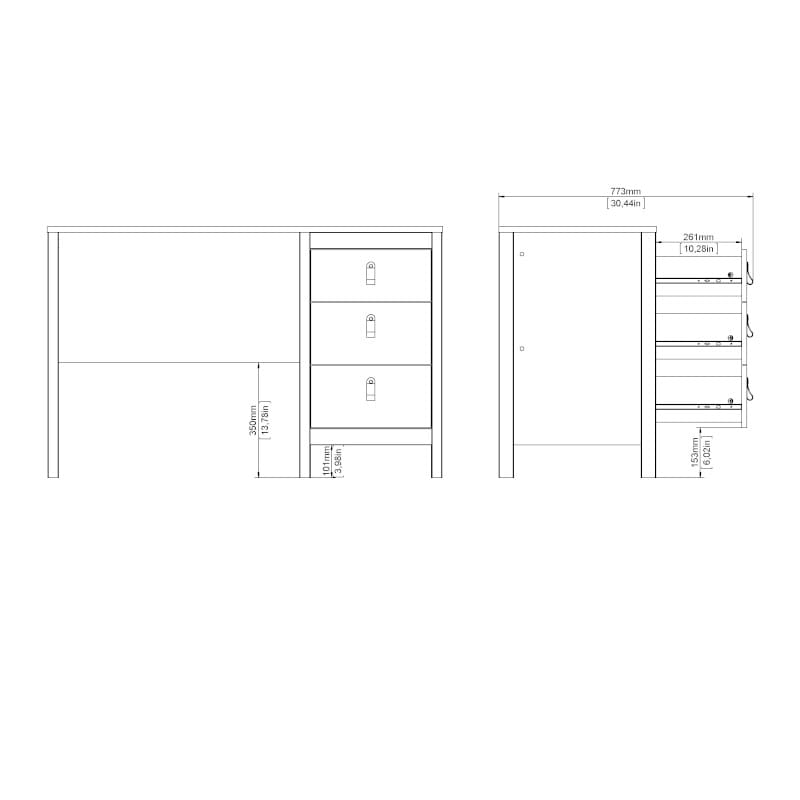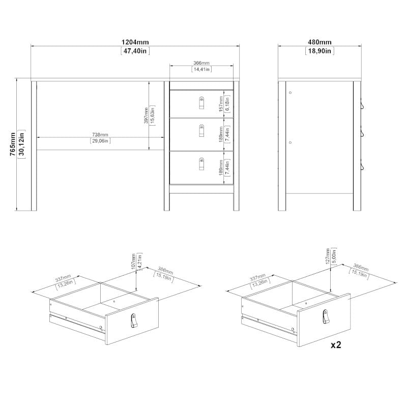Kogu sarja mööbel on valmistatud mööbliplaadist. Kirjutuslaual on kolm metallsiinidel liikuvat sahtlit.