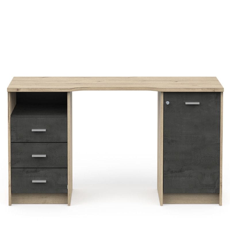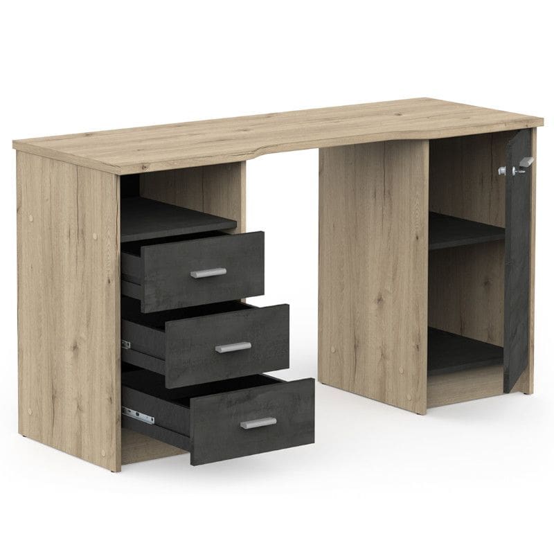 Kirjutuslaua vastupidavuse tagab kvaliteetne mööbliplaat. Lauaplaadi maksimaalne kandevõime on kuni 30 kg. Laua kolm sahtlit liiguvad mugavalt metallsiinidel. Uks lukustatav ning selle taga on üks vaheriiul.