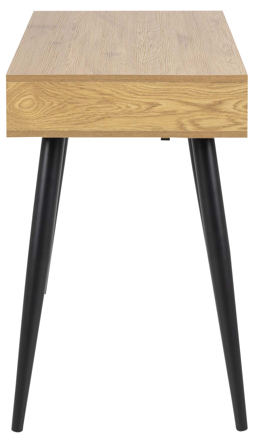 Kirjutuslaud NEPTUN 110x50xH77cm, tamm. Kirjutuslaud on vajalik täiendus igas kodus, võimaldades mugavamalt arvutit kasutada või endale praktiline kodukontori ruum luua. Puidutoonis kirjutuslauad on ideaalsed kasutamiseks koduses miljöös, kuna soe materjal ja mahedad toonid sobivad hästi erineva sisustusega. Kirjutuslaual on kolm sahtlit, mis on metallsiinidel. Laud on valmistatud melamiinplaadist. Värvus on tamm. Jalad on valmistatud musta värvi metallist. Toote mõõdud on 110x50xH77cm.