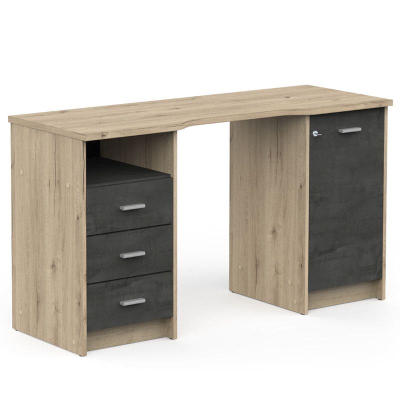Stabiilsete terasraami jalgade ja 60 cm sügavusega sobib see kontorilaud hõlpsasti väiksematesse ruumidesse ja igasse keskkonda. Lauaplaat on mööbliplaadist, hickory tamme imitatsiooniga.
