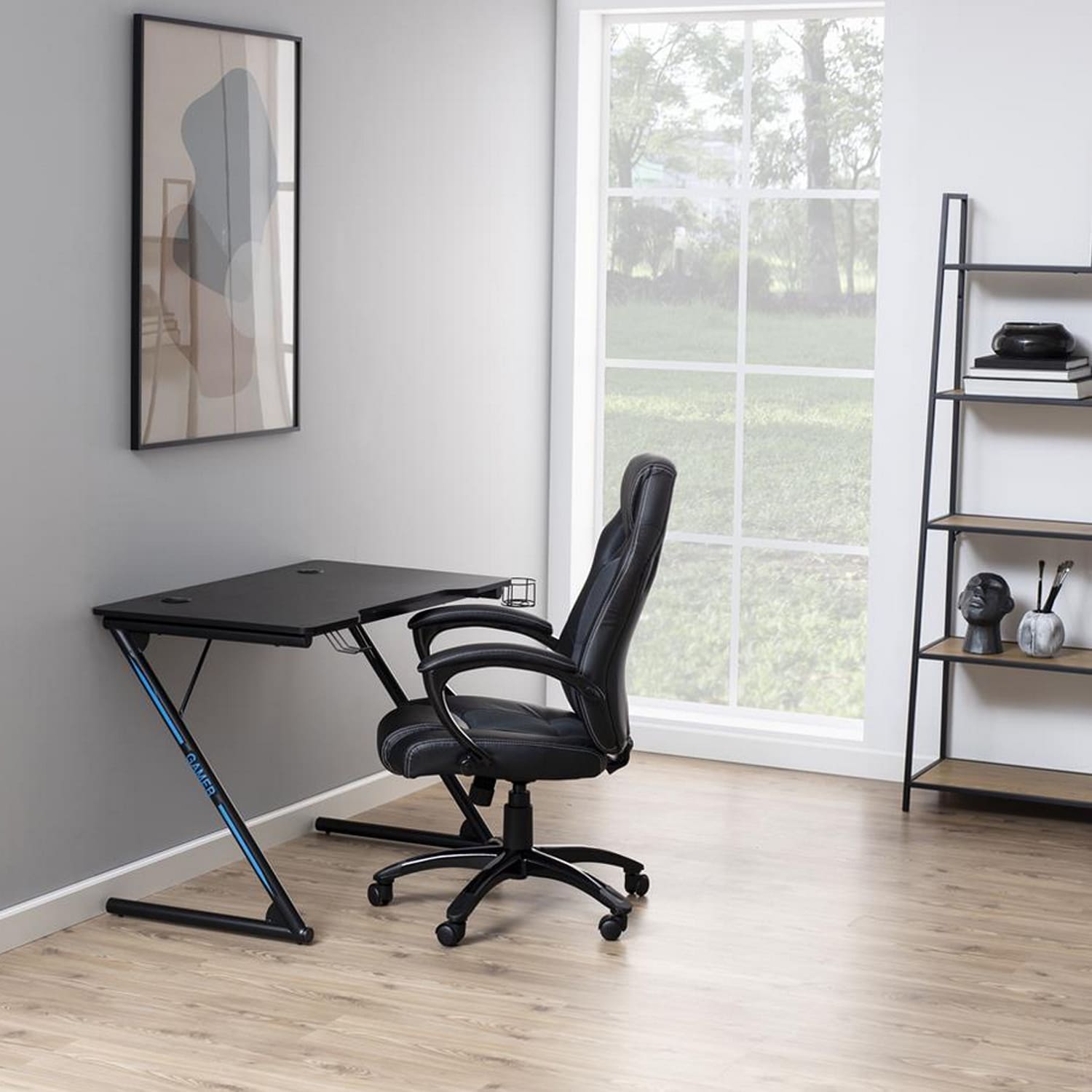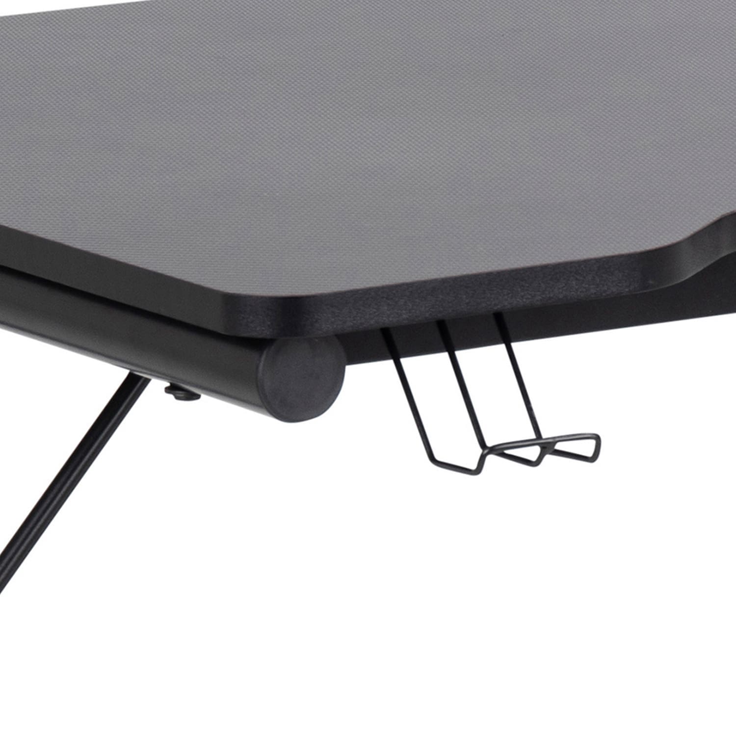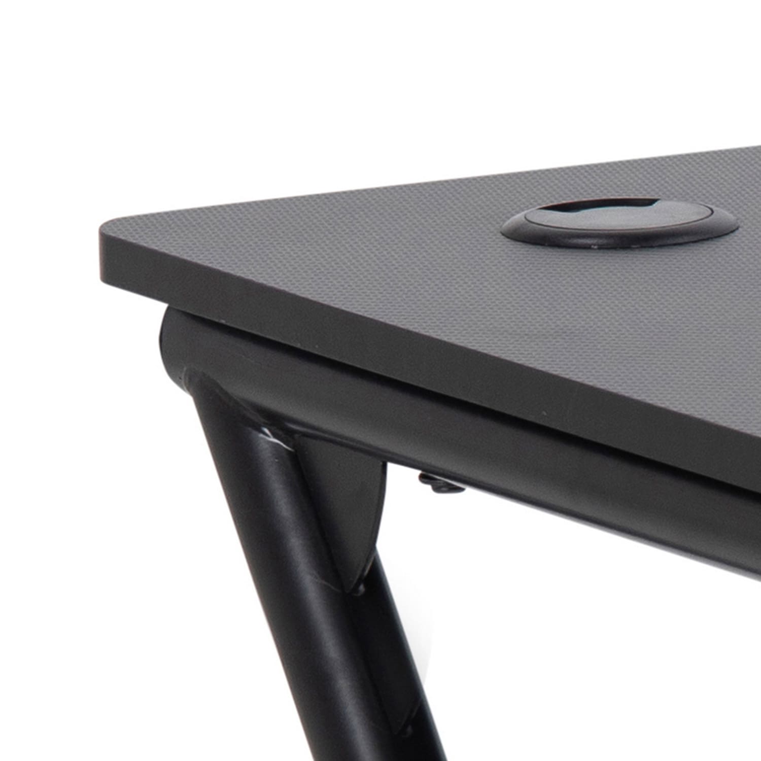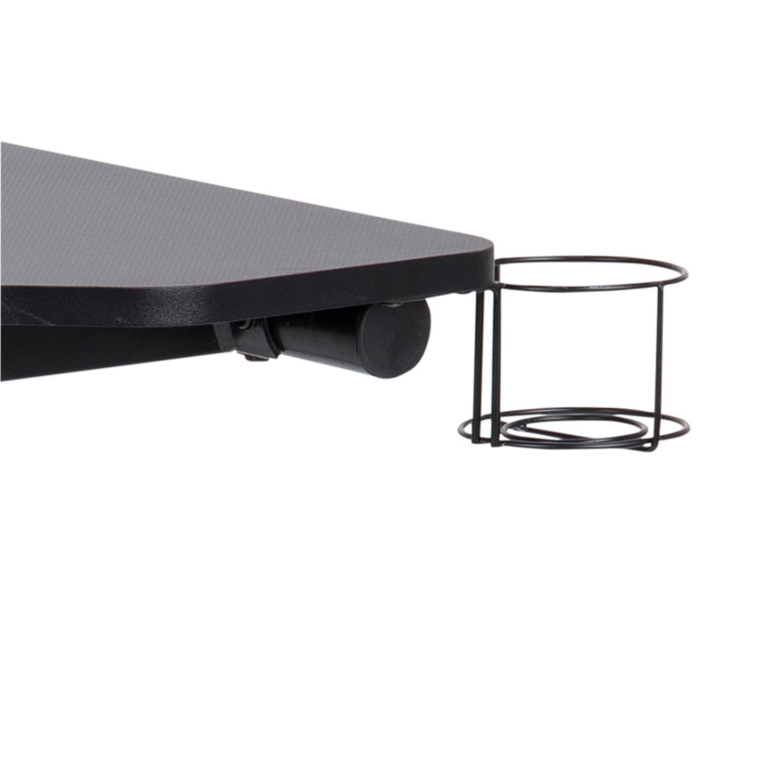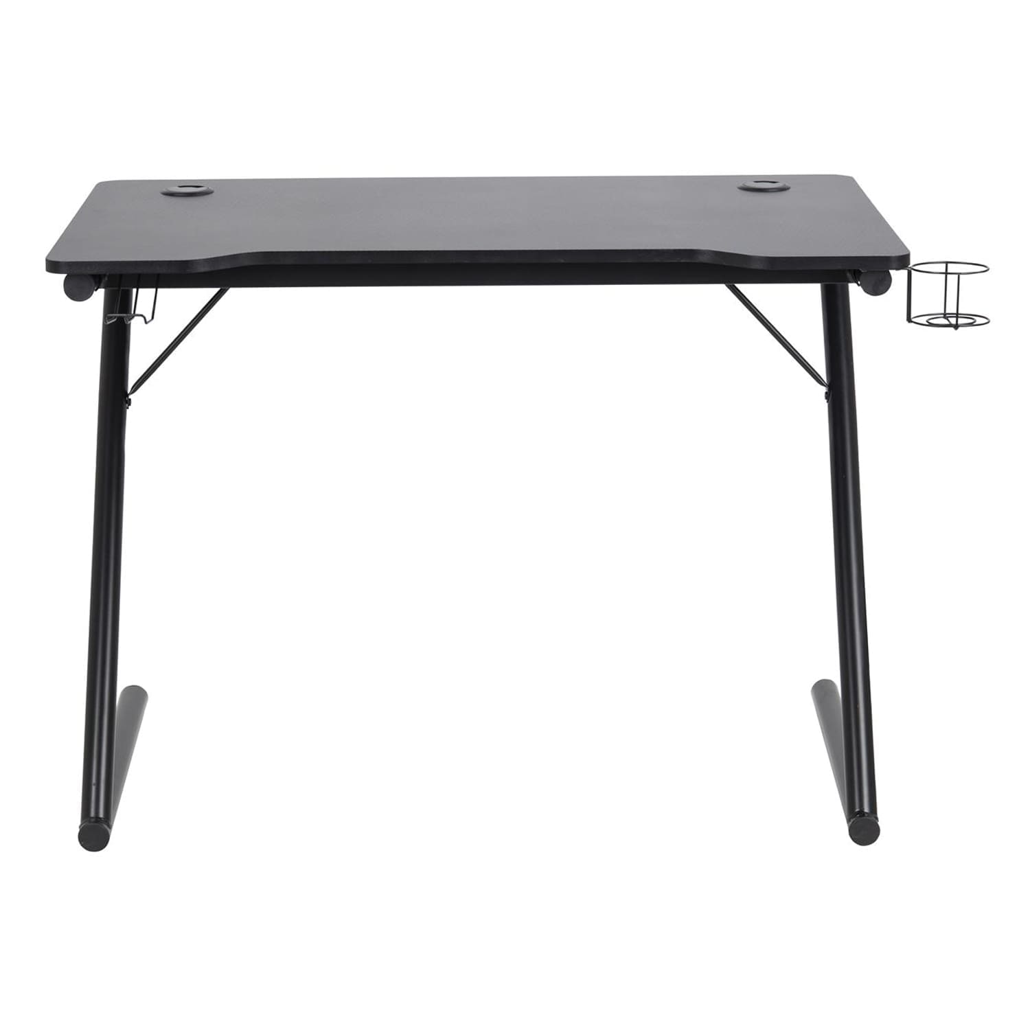 Kirjutuslaud TROOPER 100x60xH75cm, must. Kirjutuslaud on vajalik täiendus igas kodus, võimaldades mugavamalt arvutit kasutada või endale praktiline kodukontori ruum luua. Laud on valmistatud MDF-ist, musta värvi melamiinist. Laual on must tassihoidja. Jalad ja raam on valmistatud musta värvi metallist. Toote mõõdud on 100x60xH75cm.