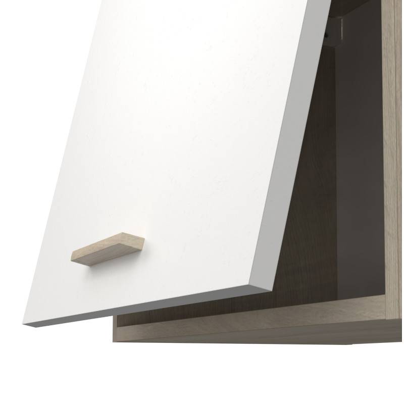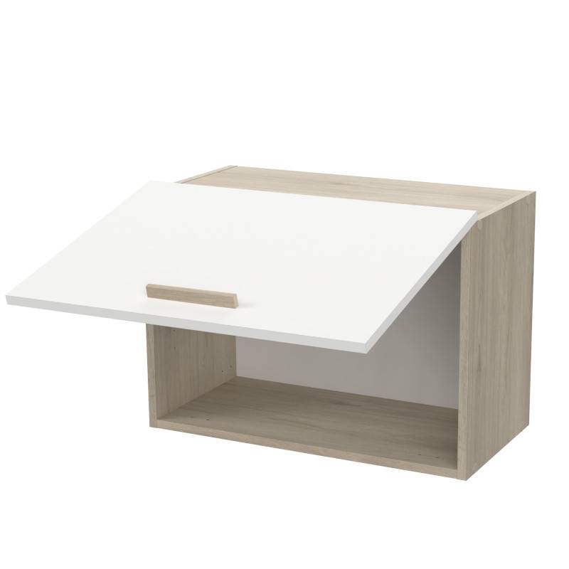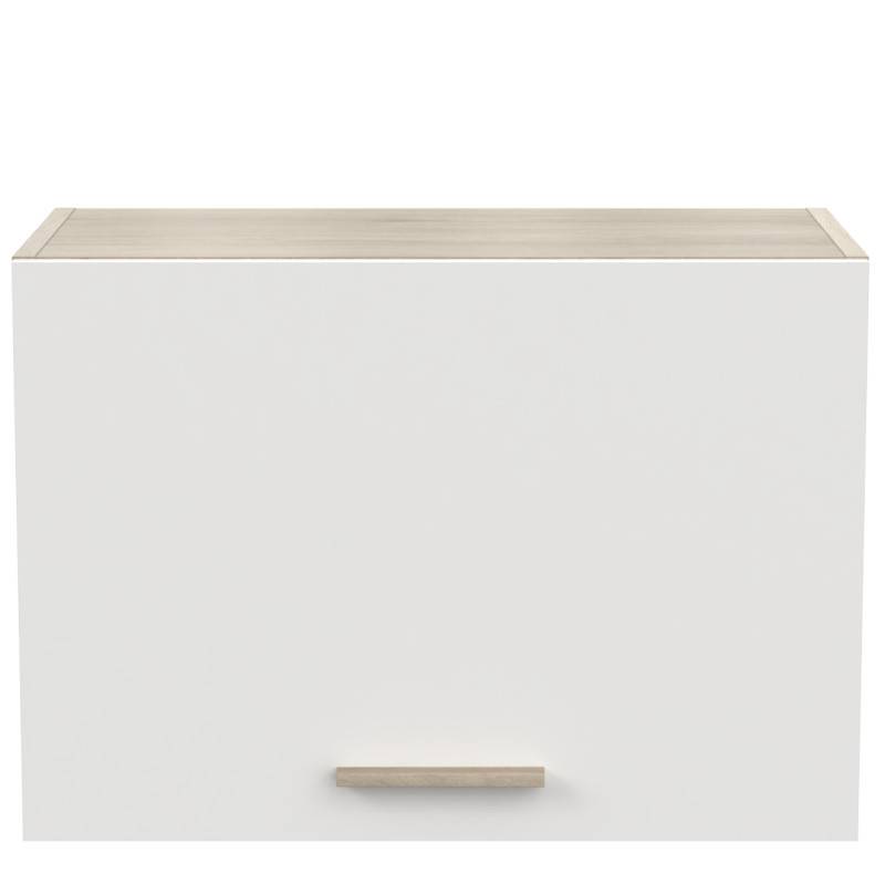 Ühe uksega ülemine köögikapp on valmistatud kvaliteetsest melamiinkattega mööbliplaadist, mis on niiskus- ja kriimustuskindel. Kapp on osaliselt kronbergi tamme imitatsioonis ning valges toonis.